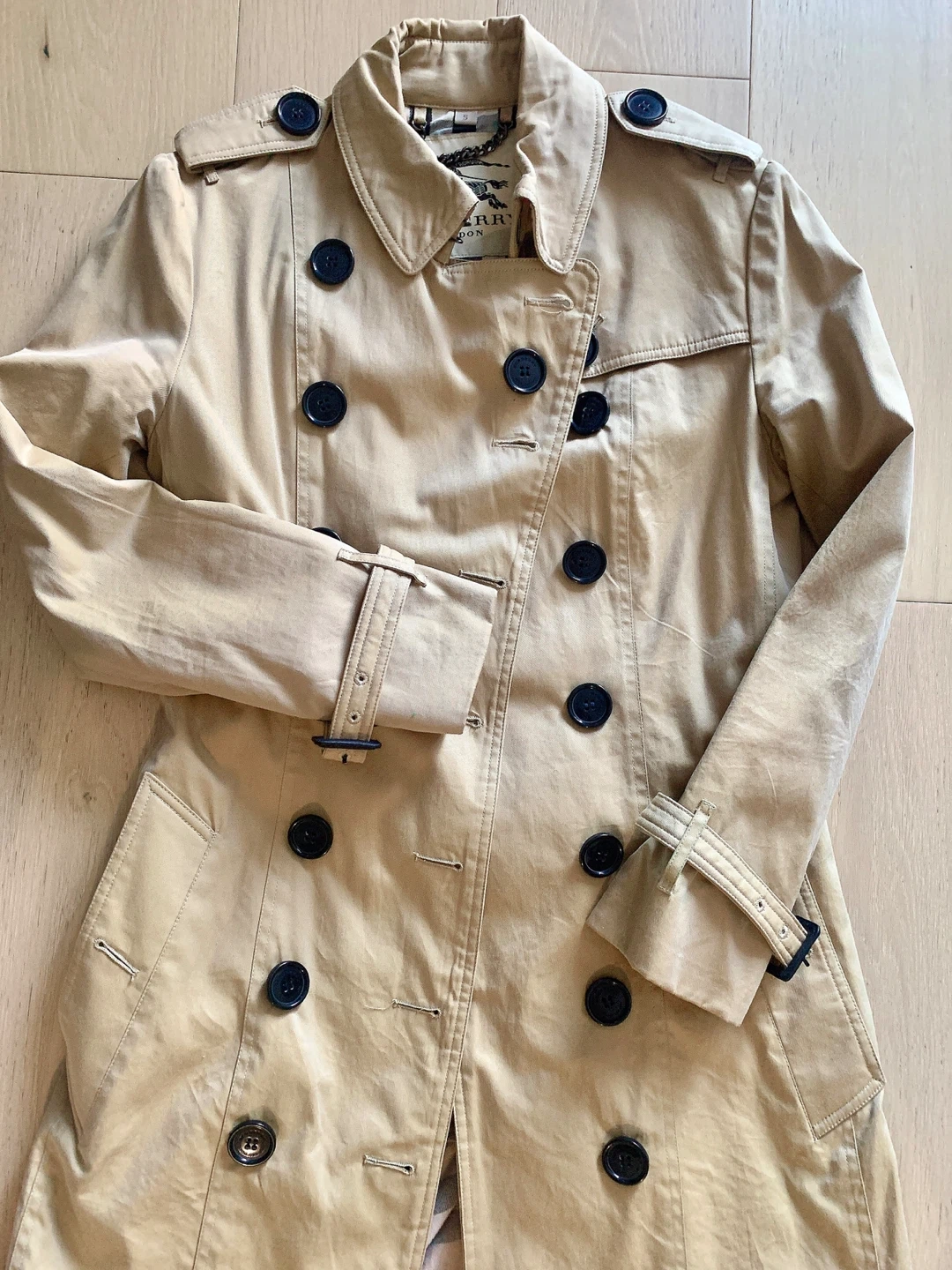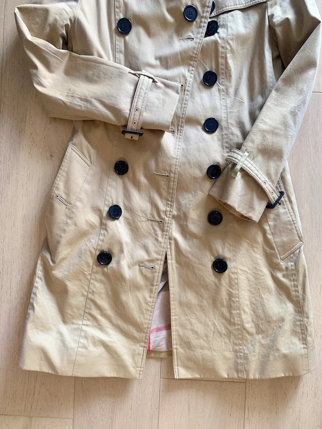 47Best quality! Here's a classic trench coat in a lovely beige colour! It's in great condition and ready for a new home. The coat features a stylish design with double-breasted closure and a belted waist. Perfect for adding a touch of elegance to any outfit! Perfect condition Size small Length: 90cm Shoulder: 40cm Chest: 84cm