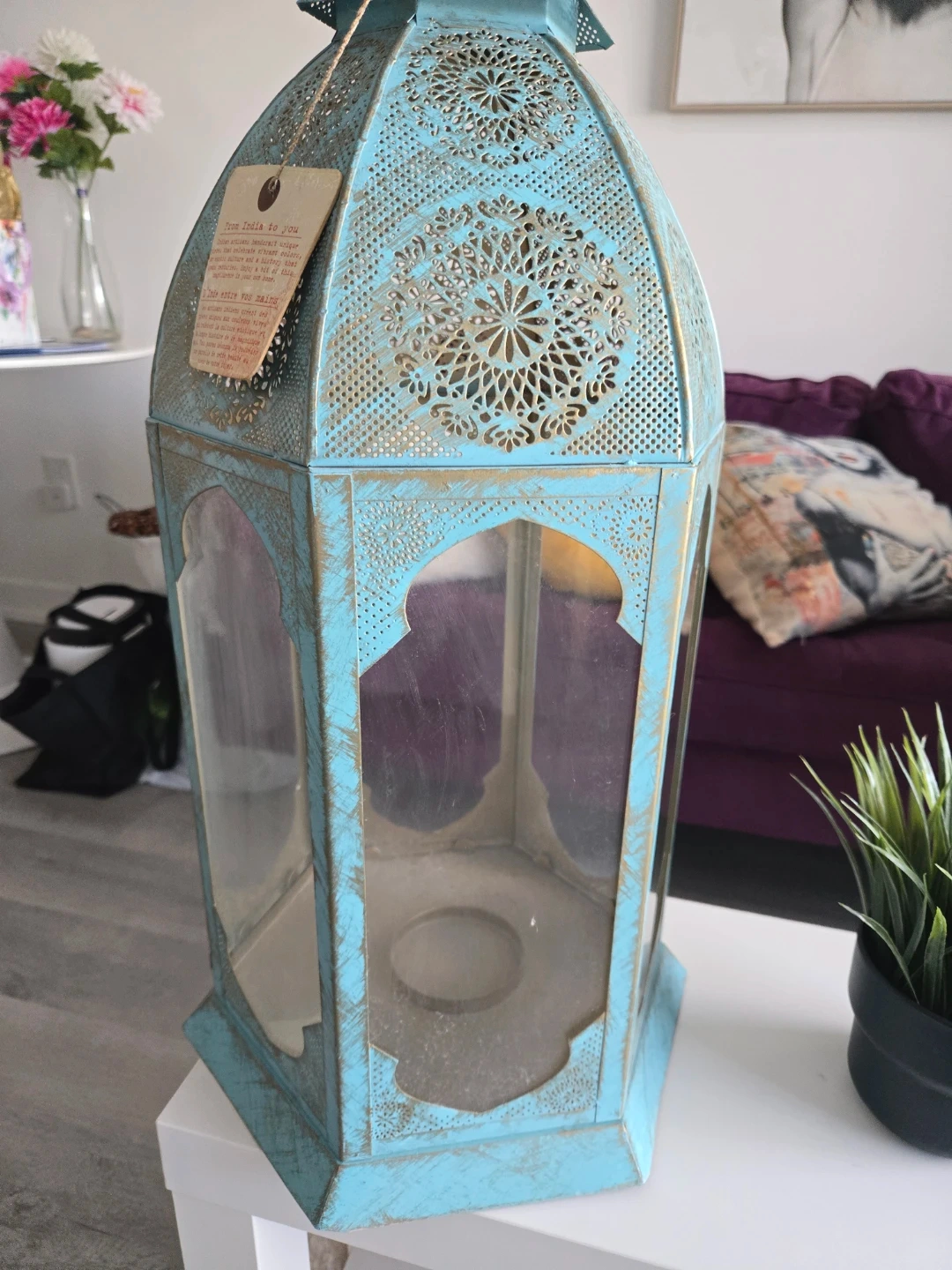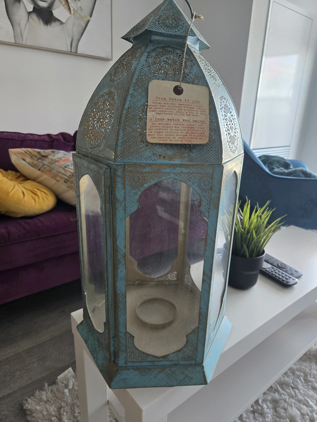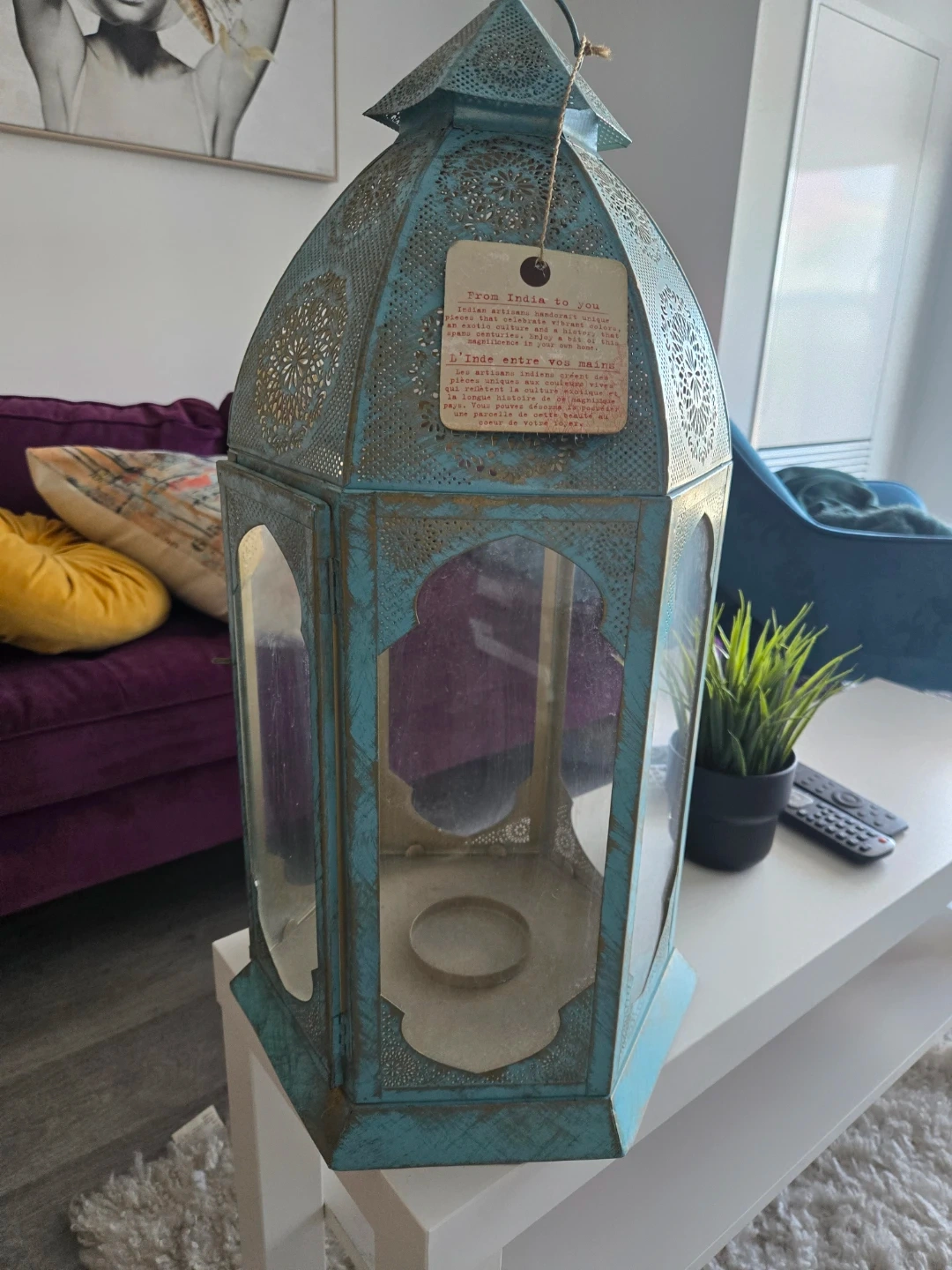 This beautiful lantern brings a touch of Indian artistry to your home. The intricate design and vibrant colours create a unique and exotic ambiance.