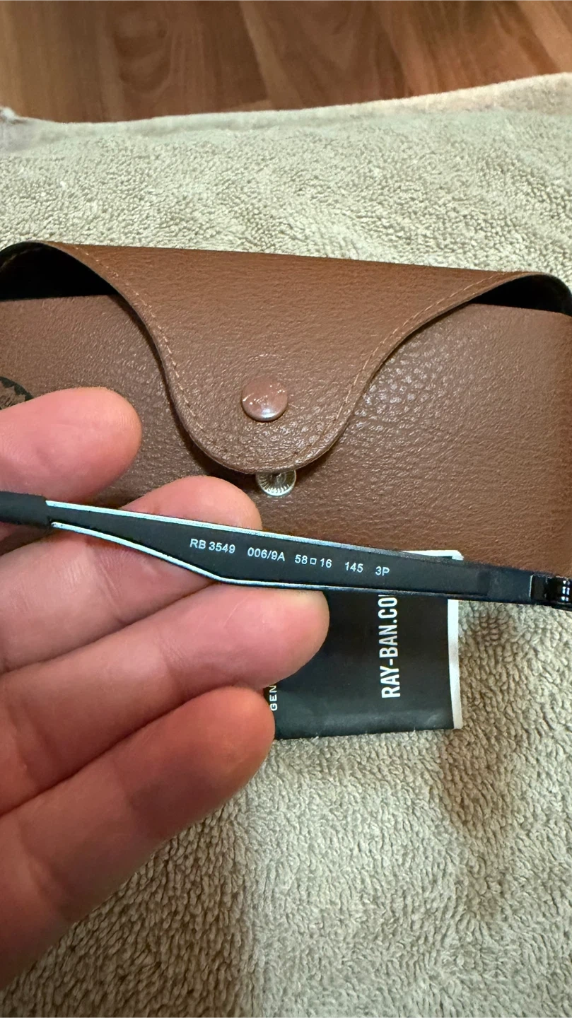 62Selling a pair of Ray-Ban sunglasses, model RB 3549 006/9A. They are polarized and come with the original case and paperwork. Size is 58 16 145 3P.