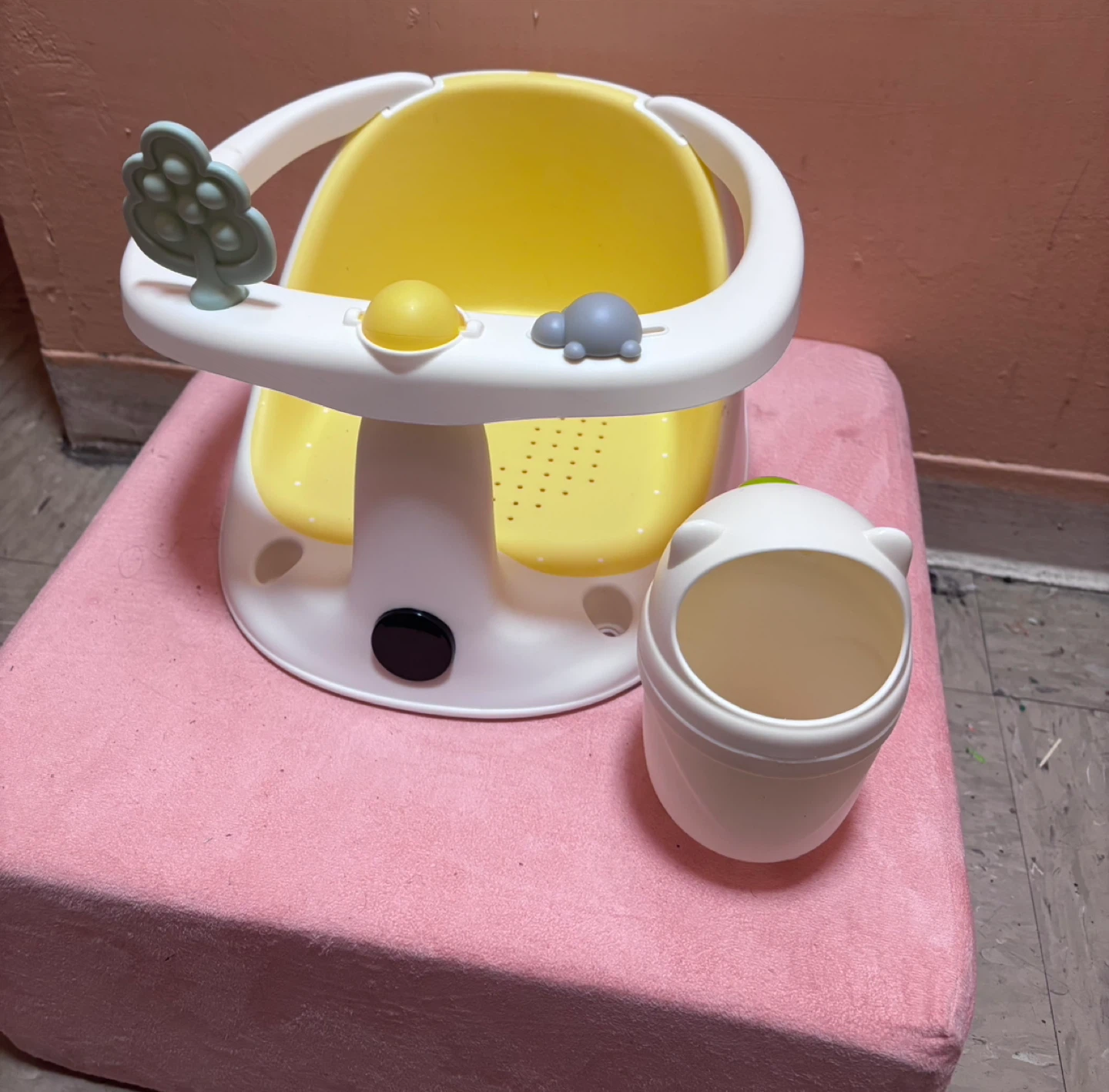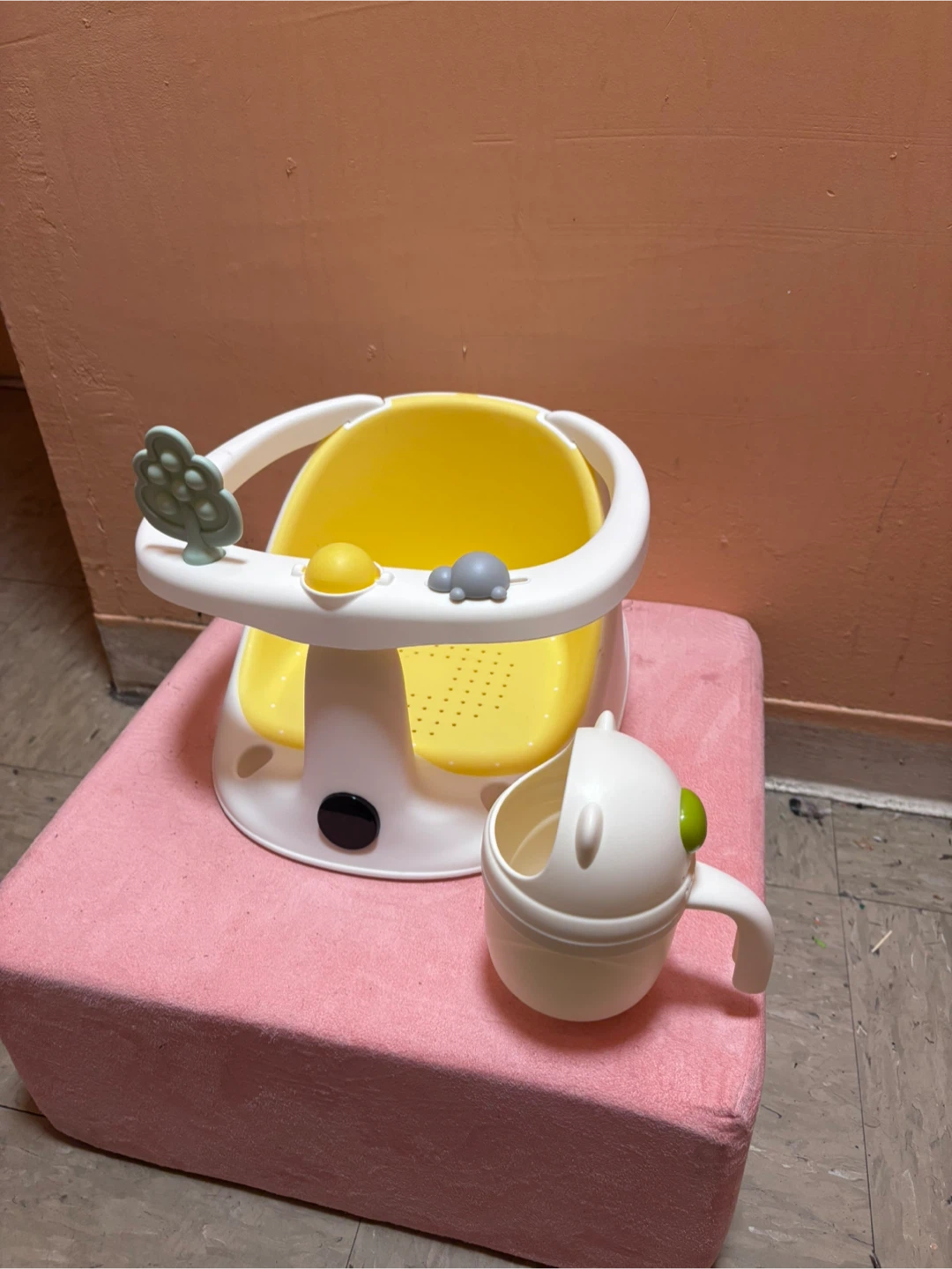 Selling a Munchkin baby bath seat! It's in great condition and comes with the accessories shown in the pictures. Perfect for making bath time safe and fun for your little one. Good for babies up to 6 months old.