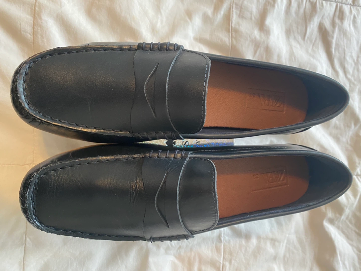 Buy & SellZara Black Leather Loafers - Size 38Zara Black Leather Loafers - Size 38$11Selling a pair of Zara loafers in size 38. They're black leather and in great shape!……”New Not in box”ConditionNewAge9 years and older0 chats·0 favorites·19 viewsSELLERverifiedFab DavidSandalwood & Bramalea650 reviewsWHERE TO MEETDomino pizza