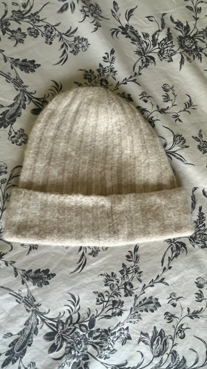 531This is a brand new beanie from Aritzia's brand, Auxiliary! It's a cream colour and made of a blend of polyamide, acrylic, alpaca, wool, and elastane. It's a super soft and cozy hat for the cold weather!