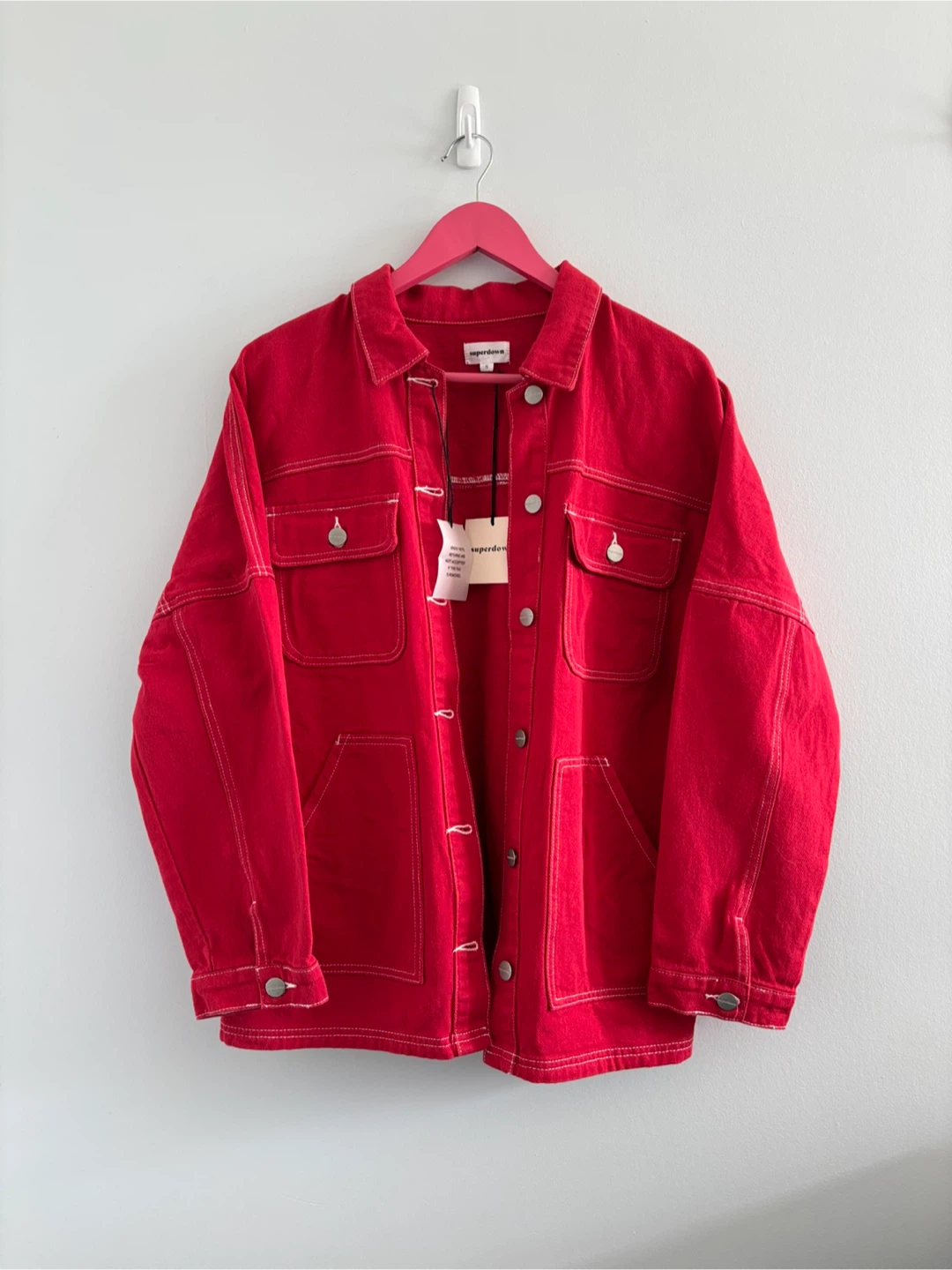 Buy & SellNWT Revolve Superdown | Red Denim Jacket - SNWT Revolve Superdown | Red Denim Jacket - S$60•Brand new with tag •Oversized fit •100% cottonConditionNewSizeSWHERE TO MEETCheck LocationView MapSELLERRachaelDownsview23920 reviews0 chats·0 favorites·80 viewsSEND CHAT TO SELLERHi Rachael! I’m interested in your listing.Hi Rachael! I’m interested in your listing.Get the Karrot app to chatSign In to chat