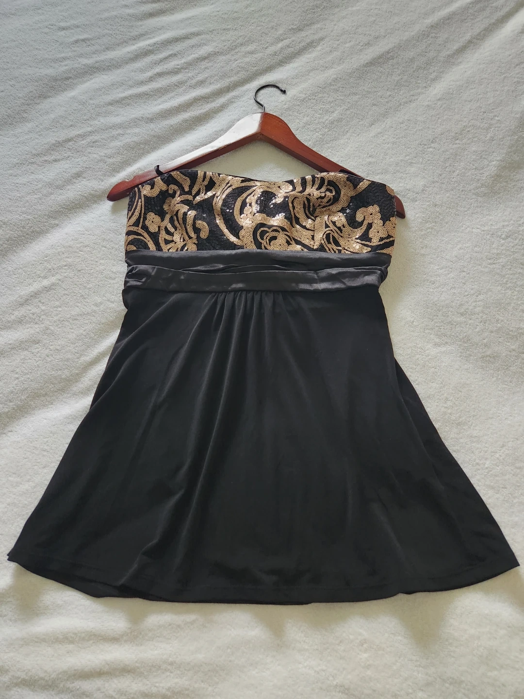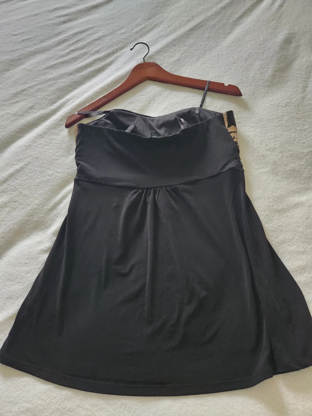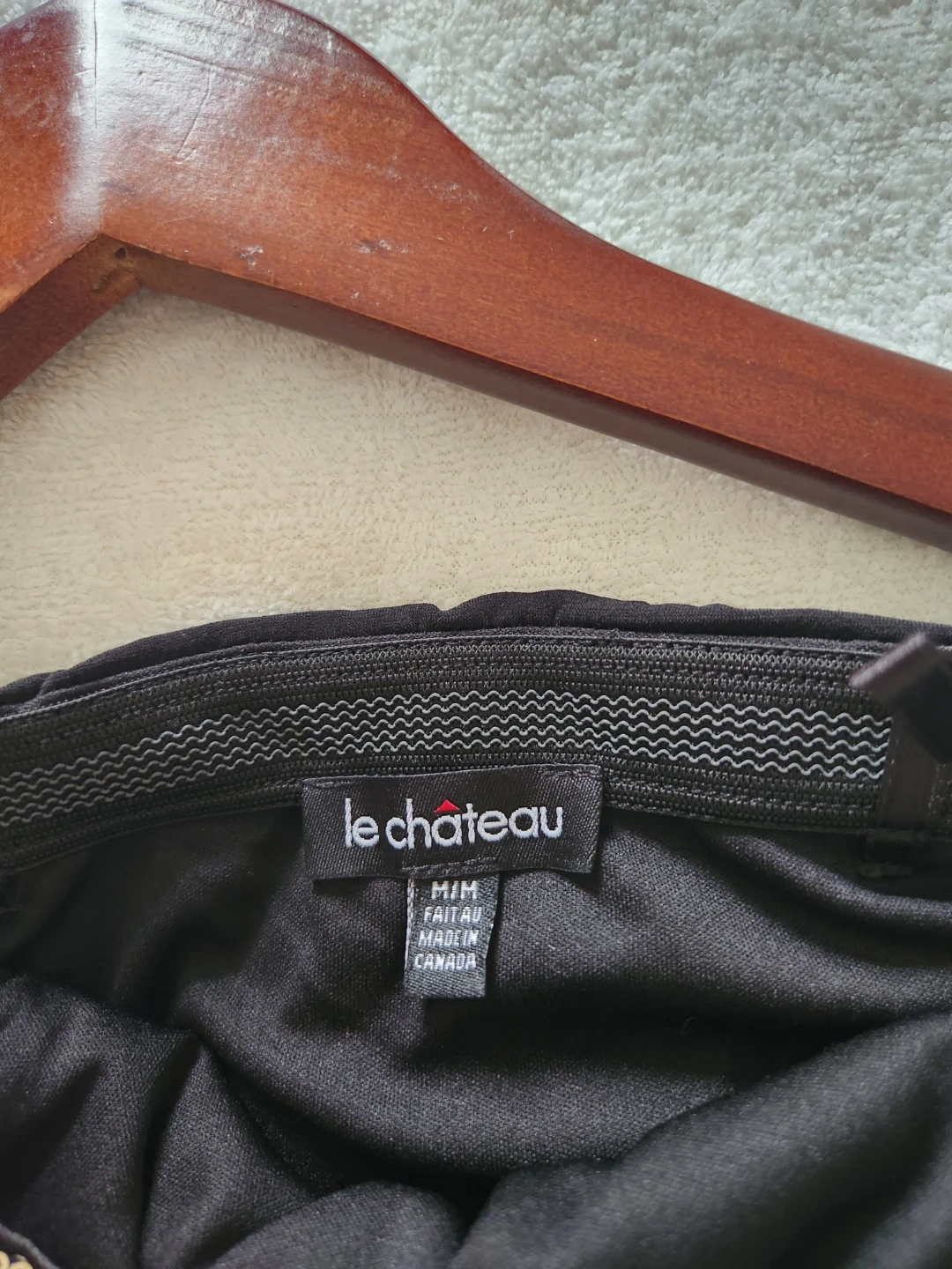 Selling a lovely Le Chateau black top in size M! It features a stylish design with a black and gold sequin top. Perfect for a night out or special occasion, this top is in great condition and ready for a new home