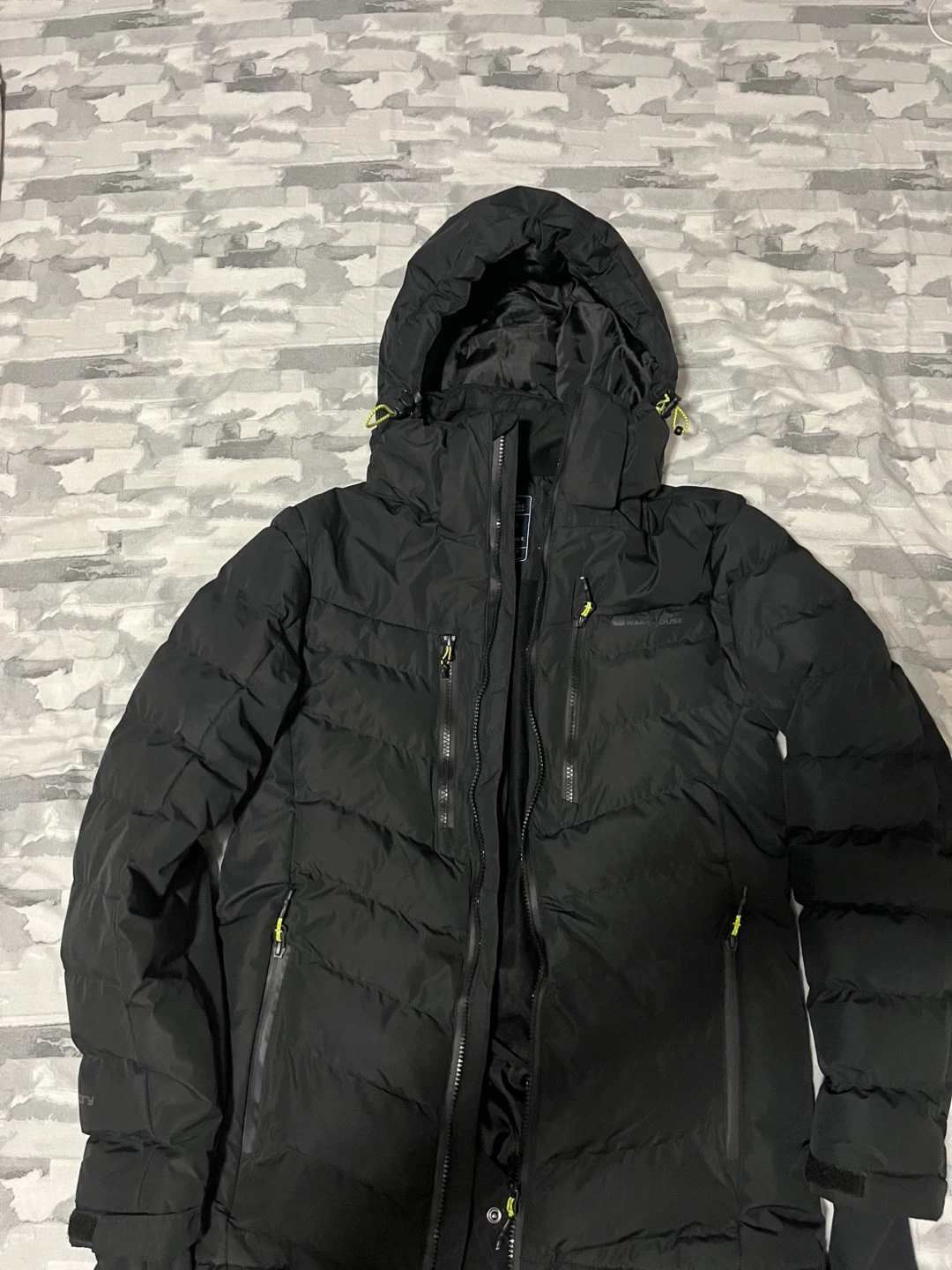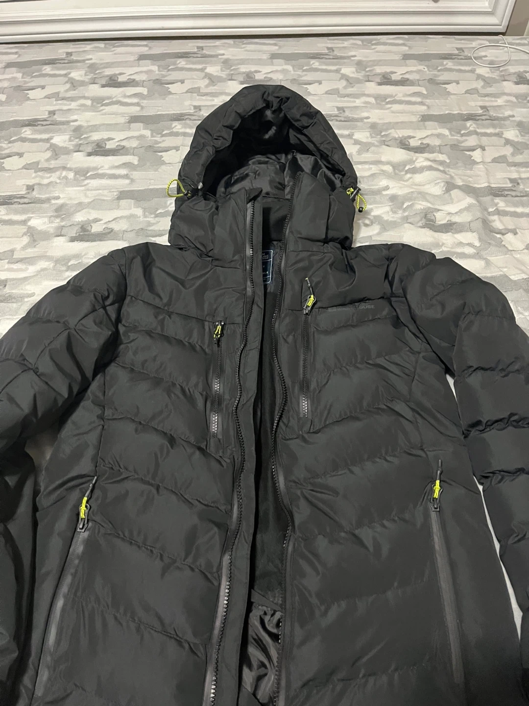Mountain Warehouse black puffer jacket in size XS! It's water-resistant and breathable, perfect for staying warm and dry during those chilly Canadian days