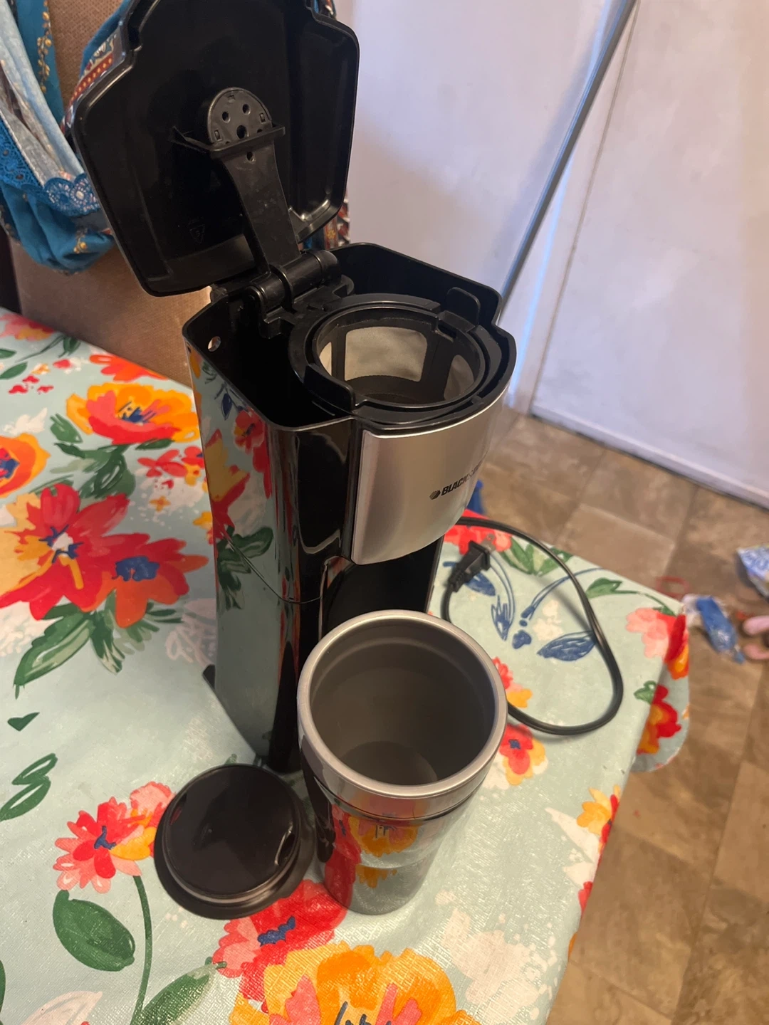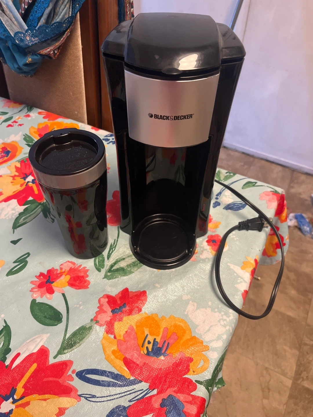 Selling a Black & Decker single-serve coffee maker! It's in great shape and comes with a travel mug so you can take your coffee on the go. Perfect for a quick and easy cup in the morning