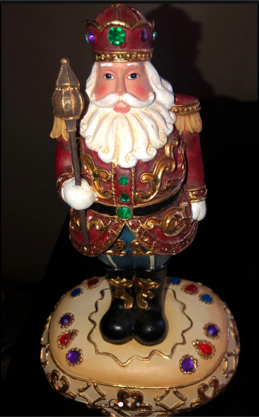 Selling a Santa Claus nutcracker figurine! It's a charming piece with a detailed design, featuring a festive red and gold outfit. Perfect for adding a touch of holiday cheer to your home decor