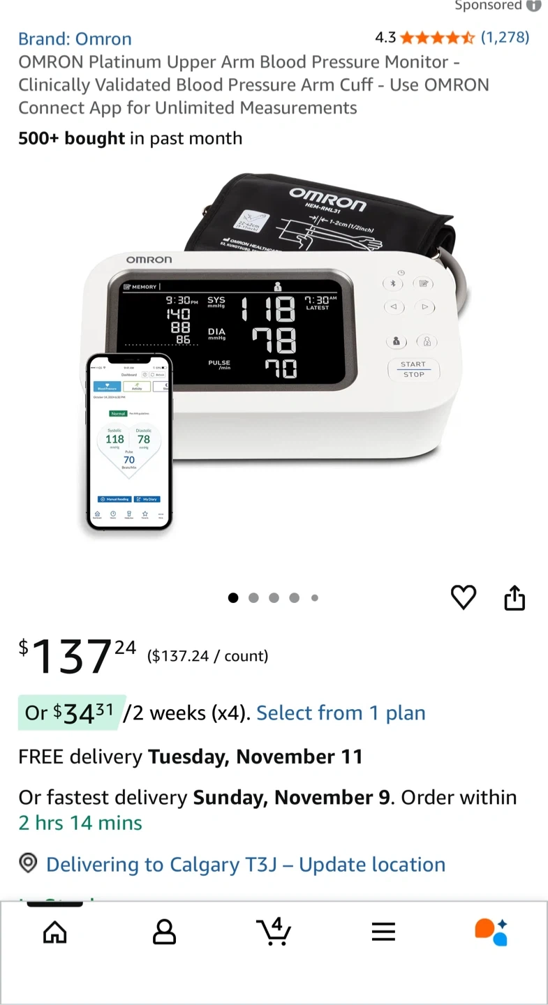 Selling an Omron Platinum Upper Arm Blood Pressure Monitor. It comes with the box and all included components. Clinically validated for accurate measurements. Originally bought for $137.24