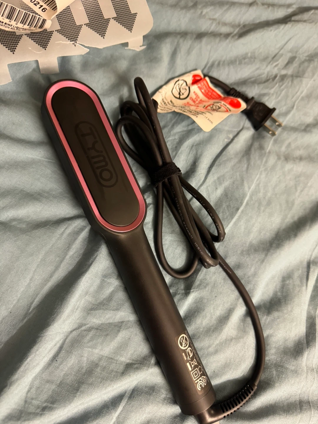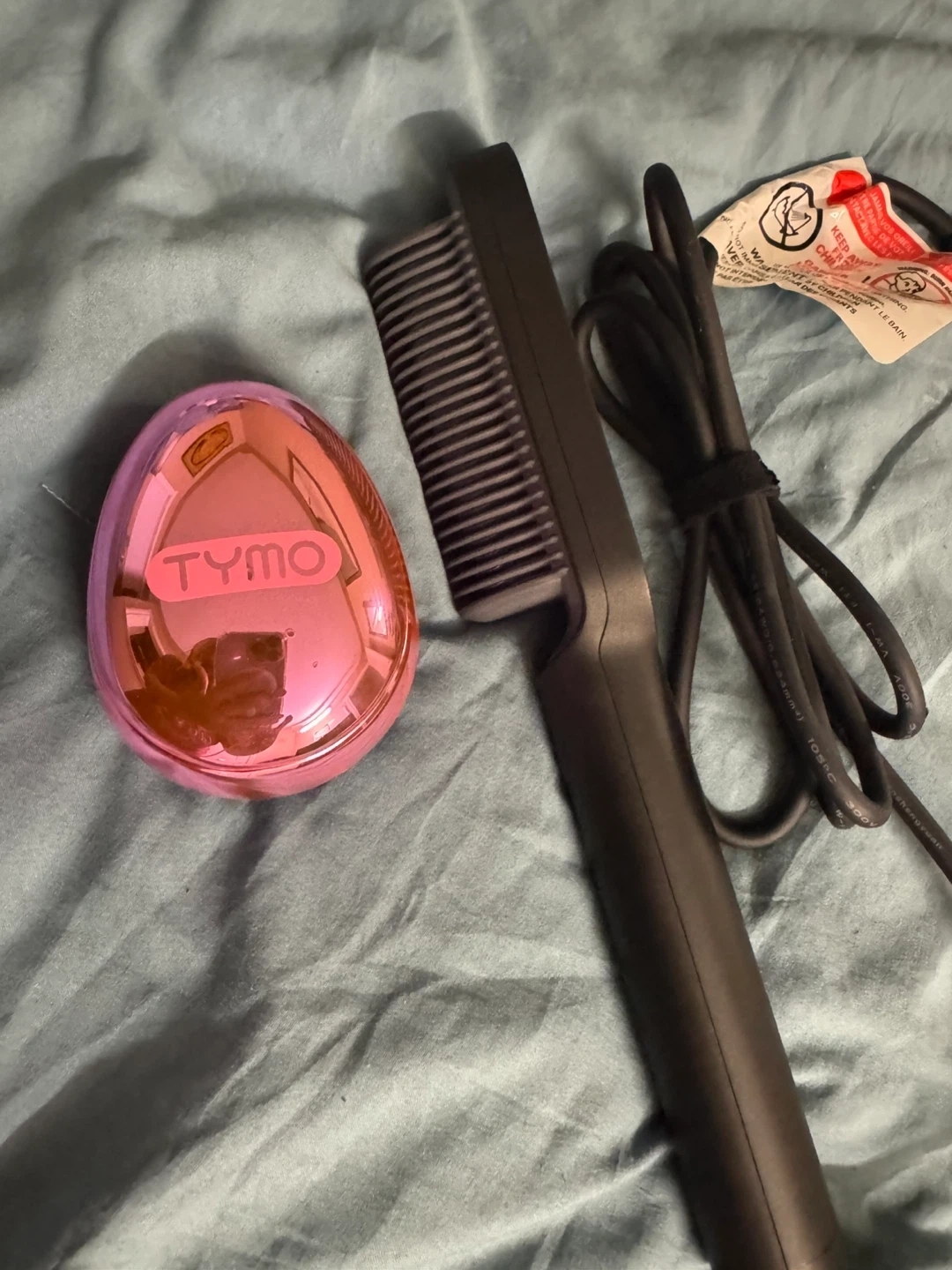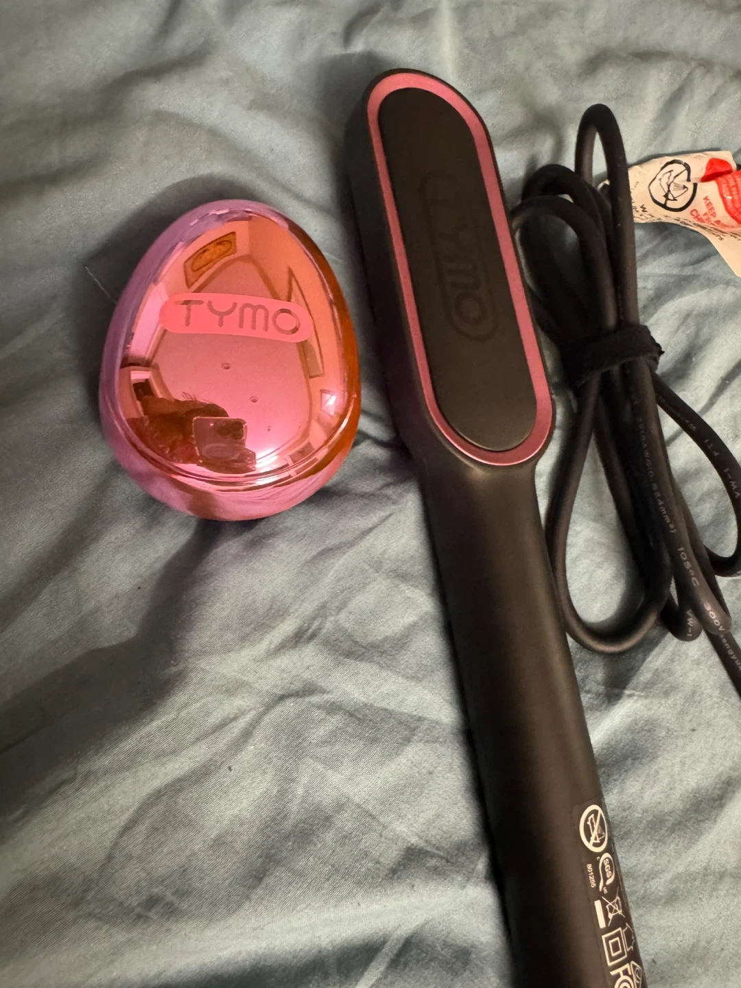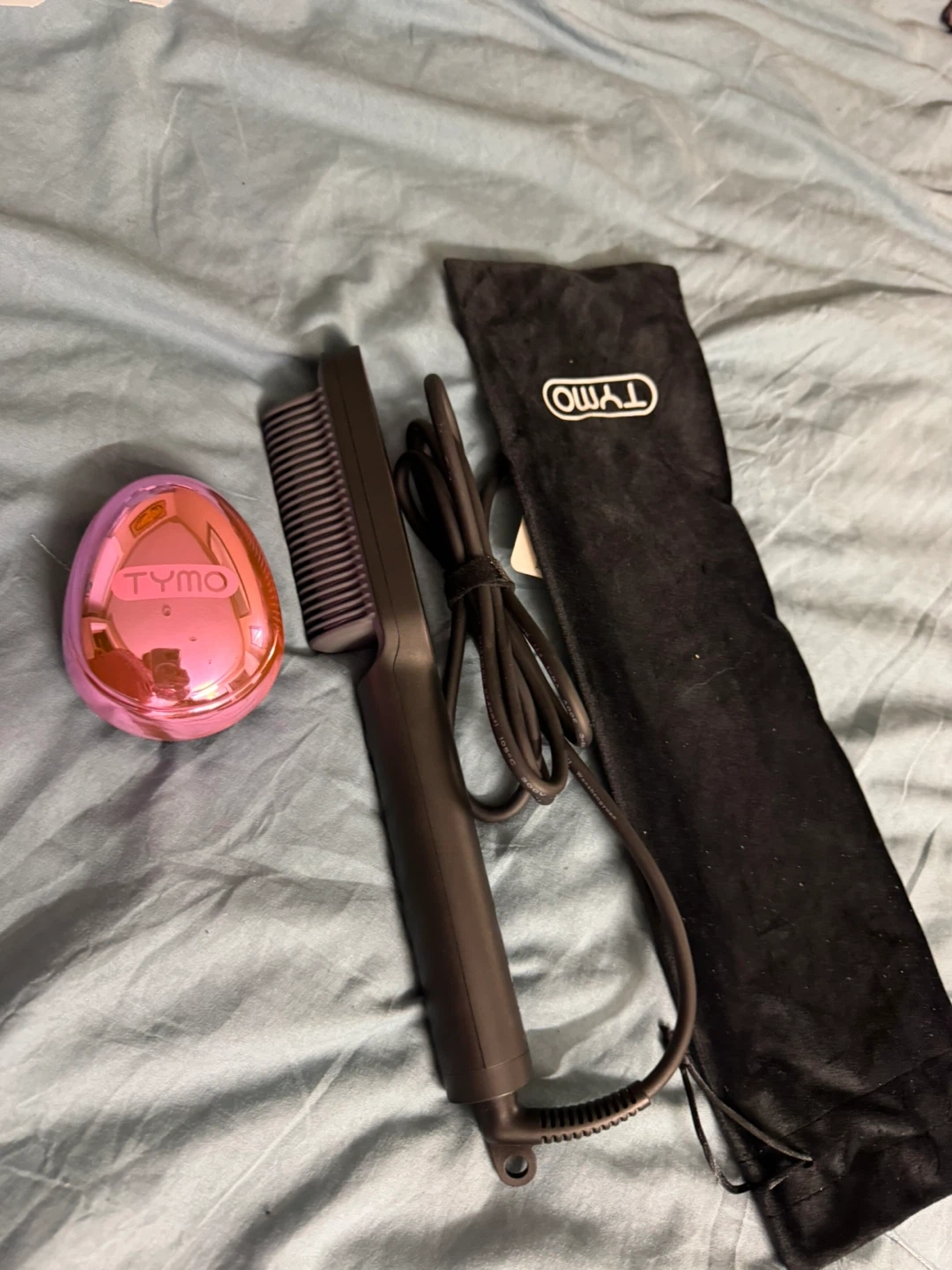 Selling a TYMO hair straightener brush, along with a detangling brush. It also comes with a carrying bag!