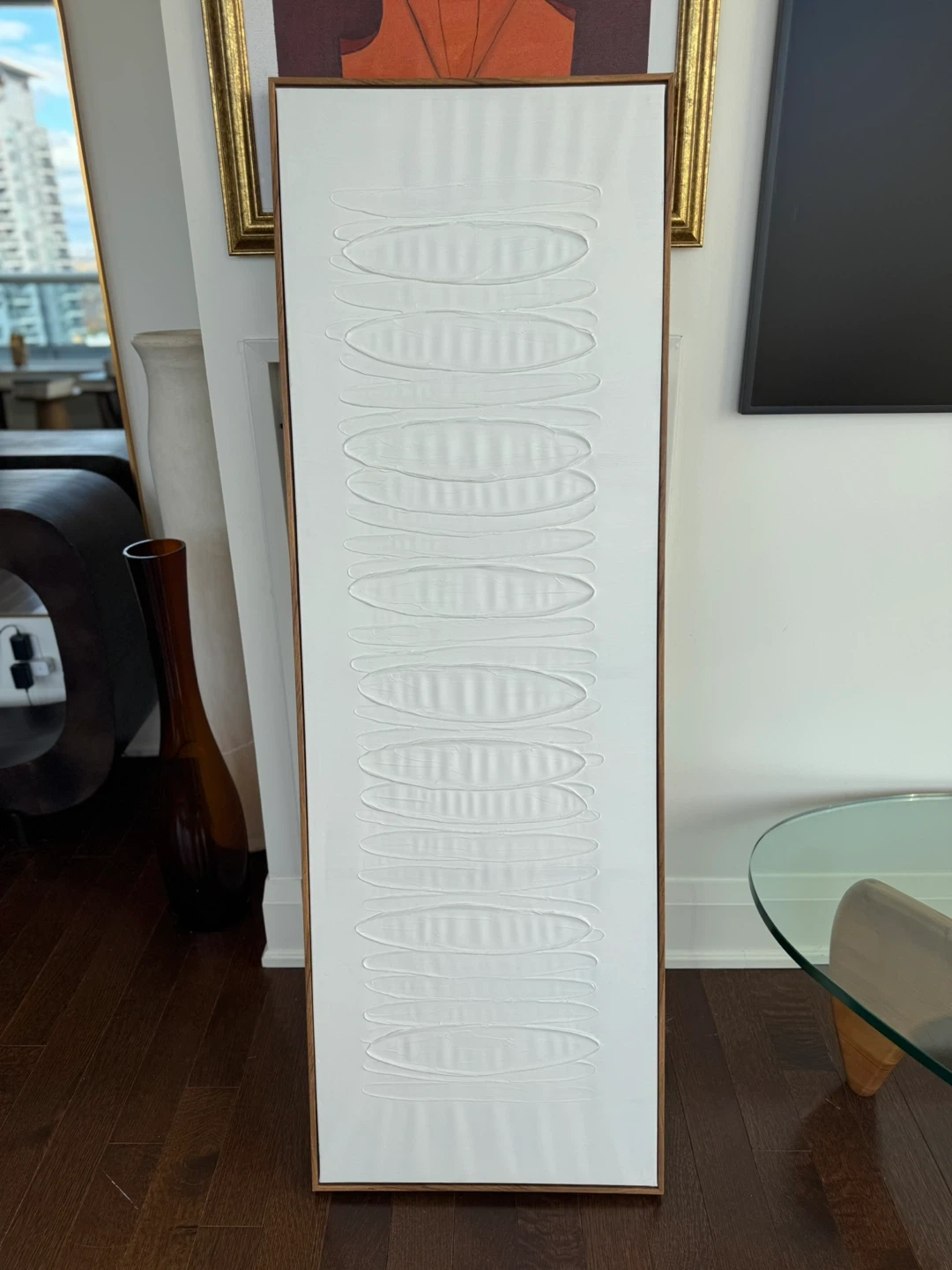 Add a touch of modern elegance to your space with this framed textured wall art! The neutral tones and subtle design make it a versatile piece for any room. It's in great condition and ready to hang