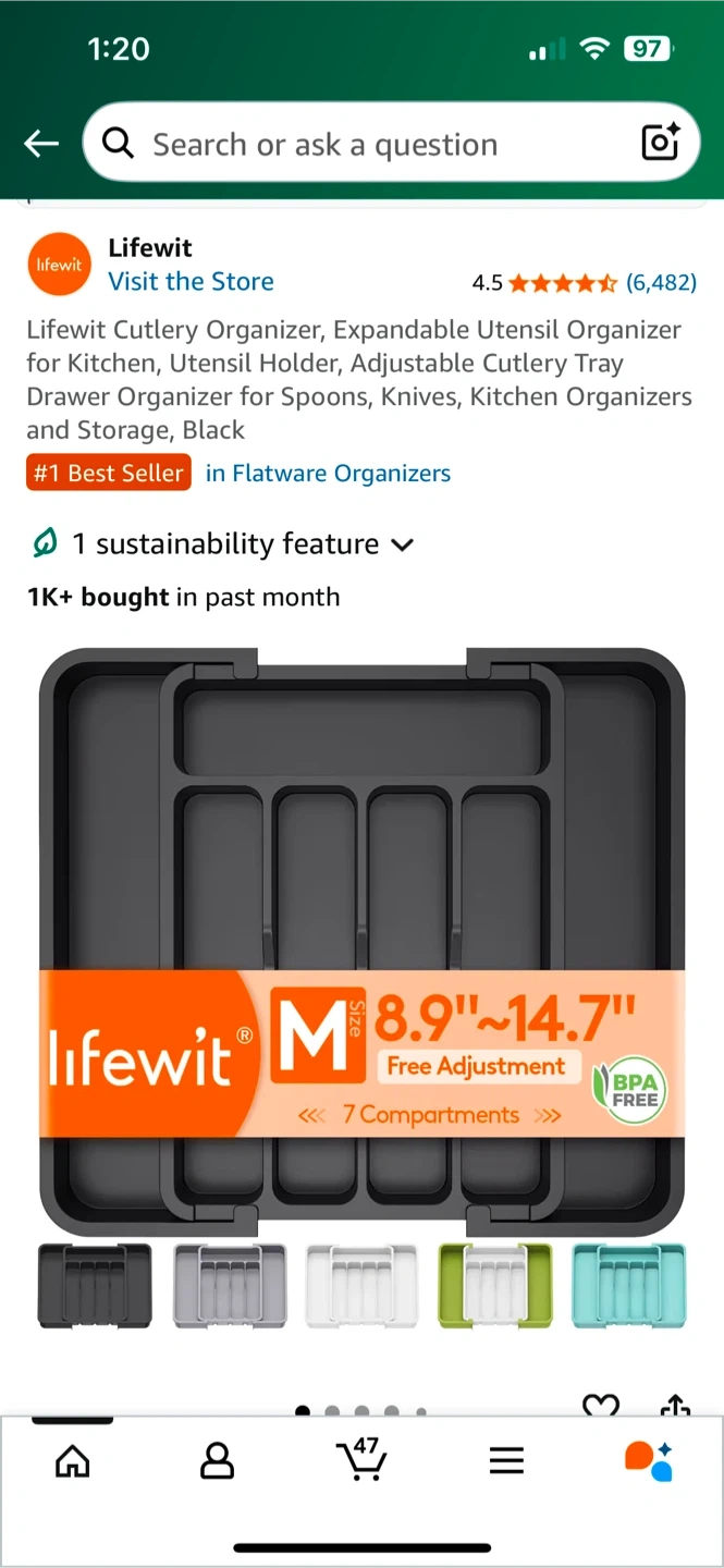 98New sealed Declutter your kitchen drawers with this Lifewit cutlery organizer! It's expandable from 8.9" to 14.7" to fit various drawer sizes. It features 7 compartments to keep your spoons, knives, forks, and other utensils neatly sorted. Made with food-grade PP material, it's also BPA-free