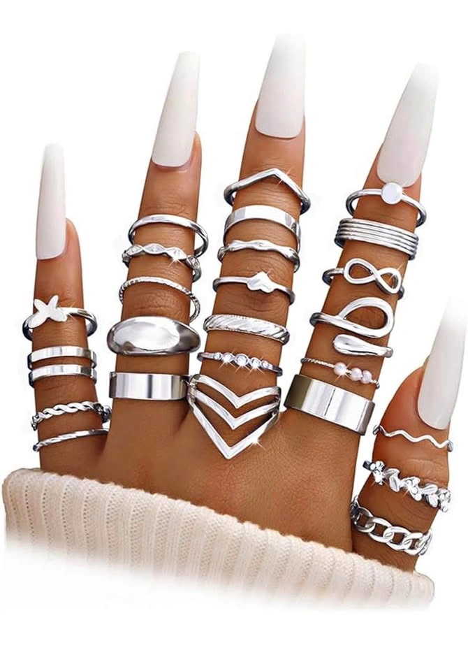 25 Pcs silver Stackable Rings Set for Women, Chunky Knuckle Finger Midi Rings, Silver Simple Stacking Cute Rings Pack Trendy Stuff Jewelry Gift