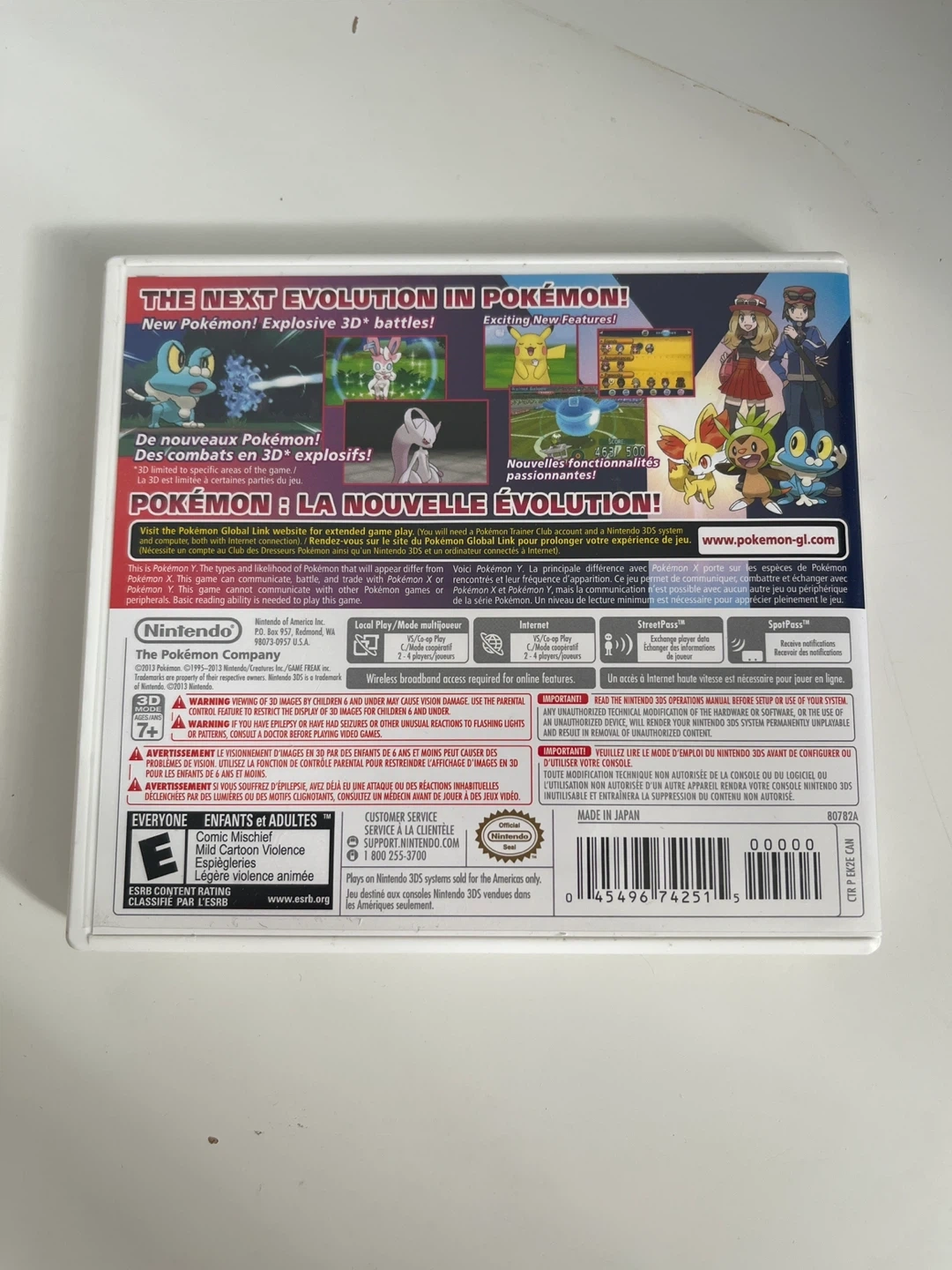 78Selling the Pokémon Y game for the Nintendo 3DS! It's in like new condition and ready for a new player to enjoy. Get ready to explore a new region and catch 'em all! Complete in box. All manuals and game. Mint condition