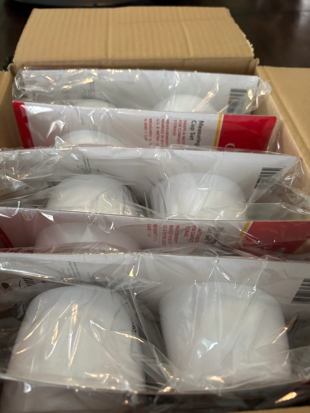 I'm selling a brand new set of measuring cups still in their original packaging! This set includes various standard sizes, perfect for all your baking and cooking needs. A must-have for any kitchen!