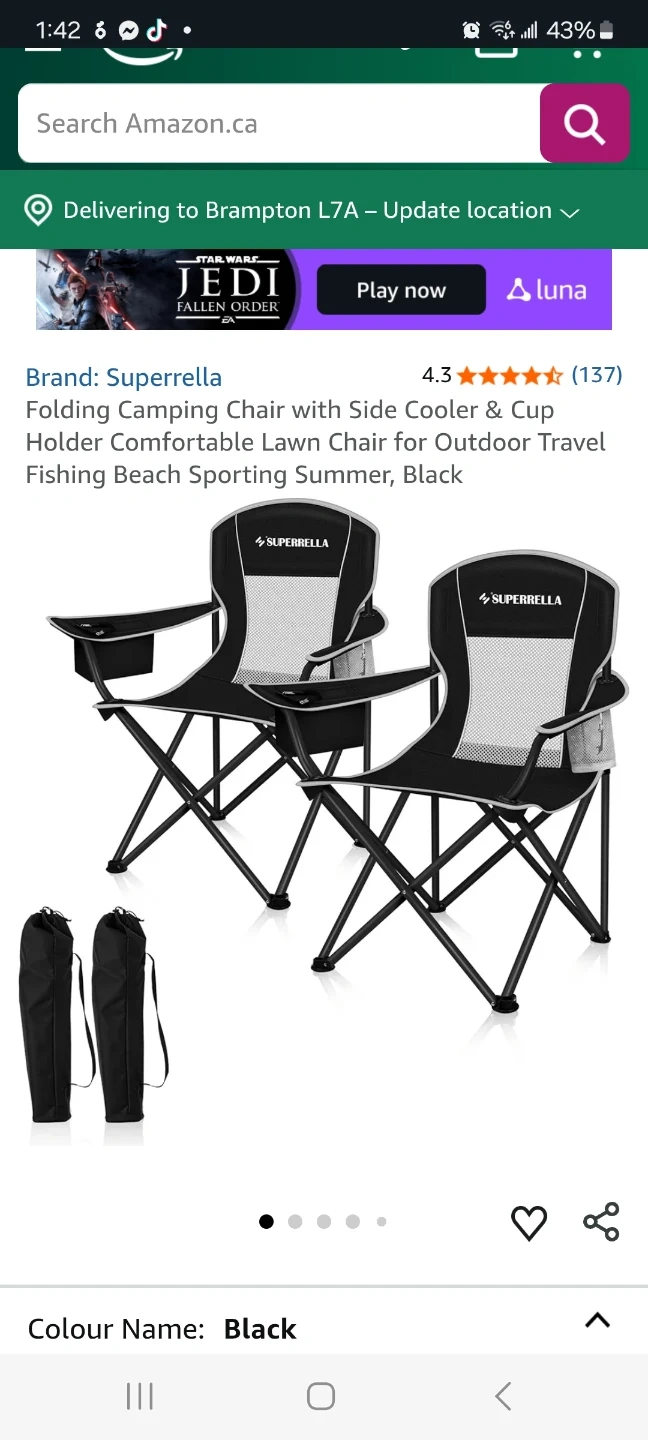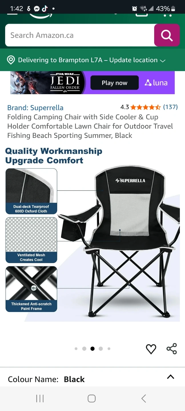 Folding Camping Chair with Side Cooler & Cup Holder Comfortable Lawn Chair for Outdoor Travel Fishing Beach Sporting Summer, Black