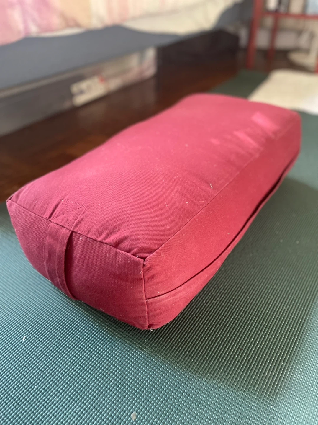 Selling a Yogavni yoga bolster in red. It's in great condition and perfect for supporting your poses during yoga or meditation