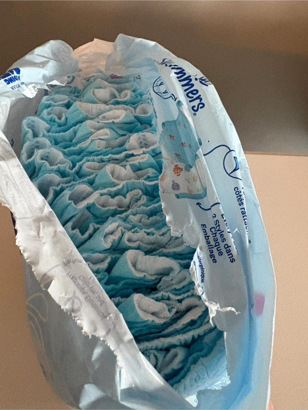 Selling a pack of Huggies Little Swimmers disposable swim pants. They're size 4, designed for babies 24-34 lbs (11-15 kg). There are 18 swim pants in the pack. They feature easy open and refastenable sides, making changes a breeze. Perfect for a day at the pool or beach!