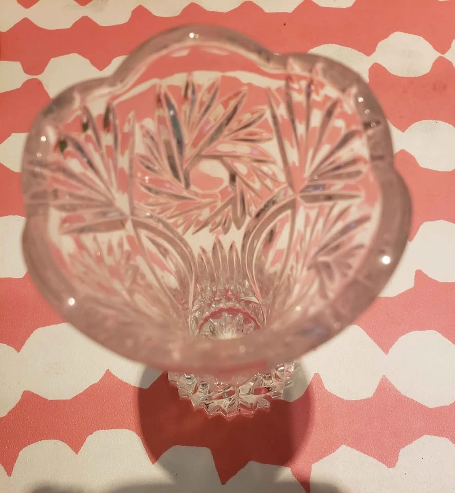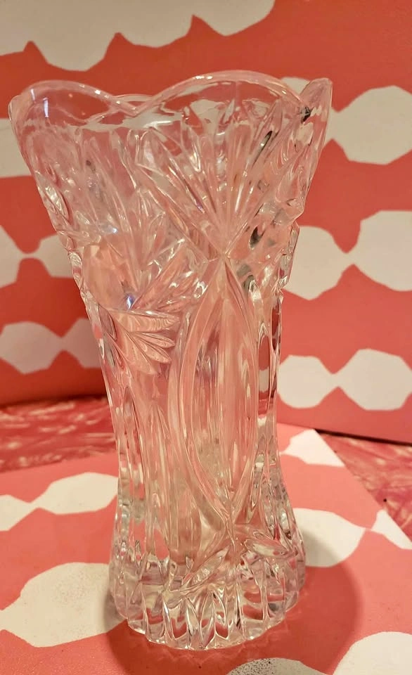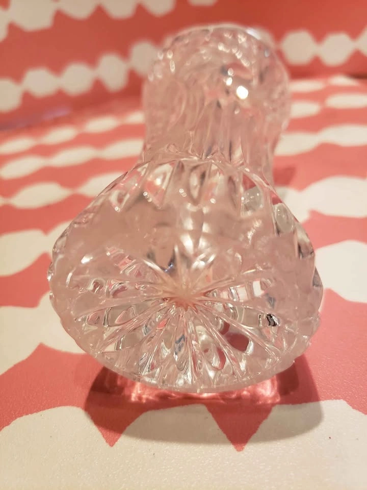 25Cute little crystal mini vase. Pinwheel cut out pattern. Nice heavy weight bottom. Only 5 inches tall! Adorable and pretty decor piece. Pick up in Upper Lonsdale North Vancouver.