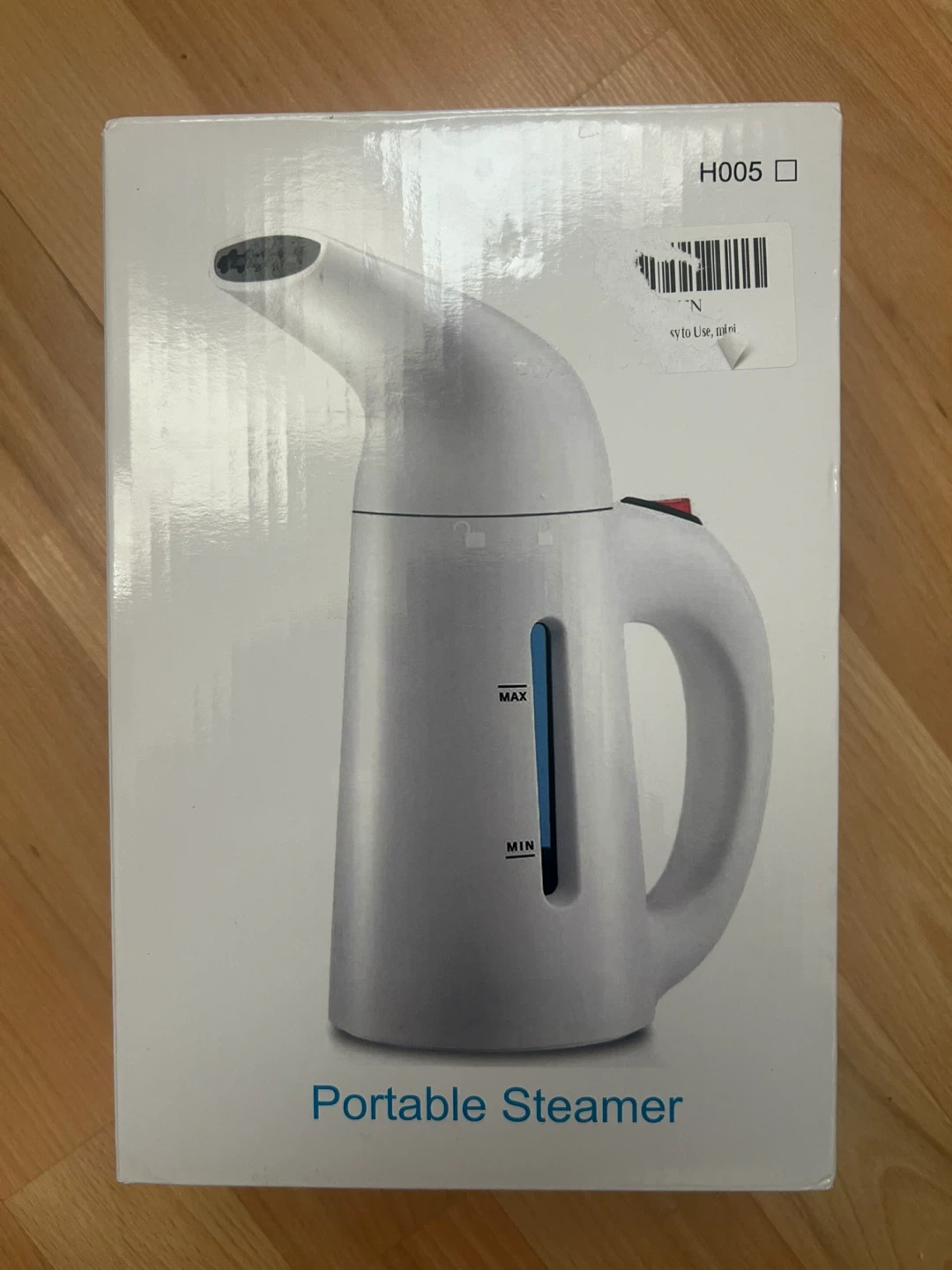 I'm selling a URPOWER portable steamer. It's white and has a 180ml capacity. This steamer is ready to use in just two minutes and features automatic shut-off for safety. It's designed to steam powerfully and evenly, and it heats quickly to emit wrinkle-busting steam in 2 minutes. The original price was $51.57 and the box is included!