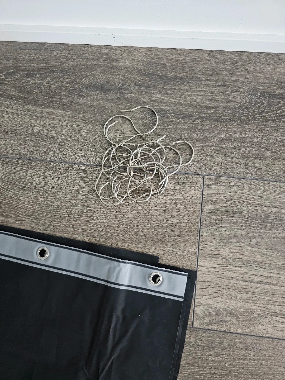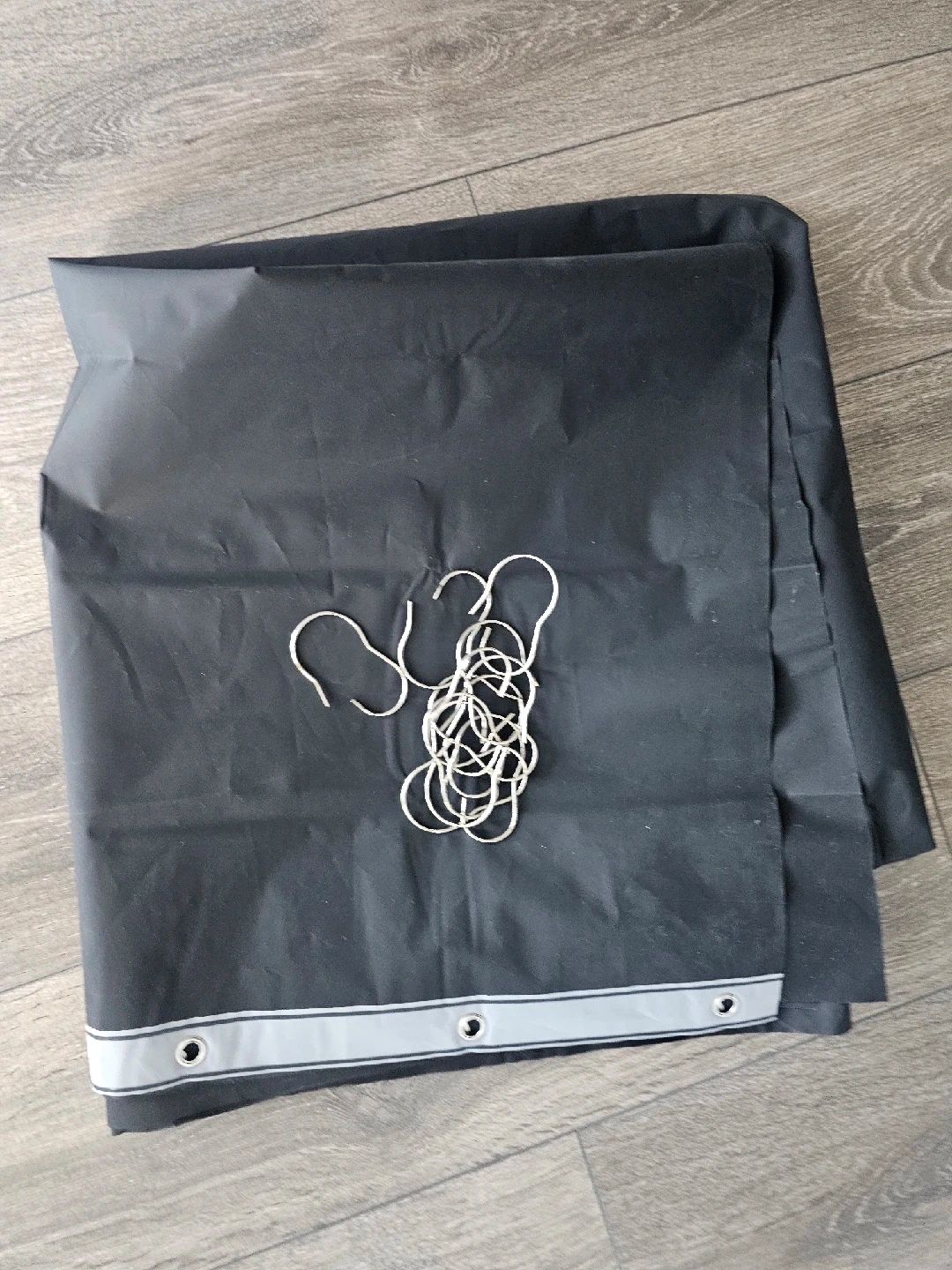 1000+Selling a black shower curtain that's in good condition. you can use it separately or liner with curtain. It comes with the shower hooks too!