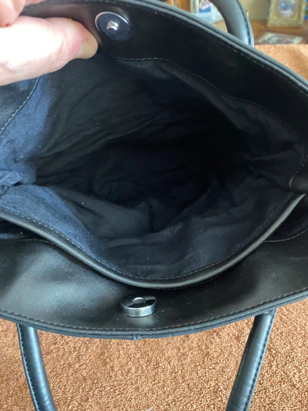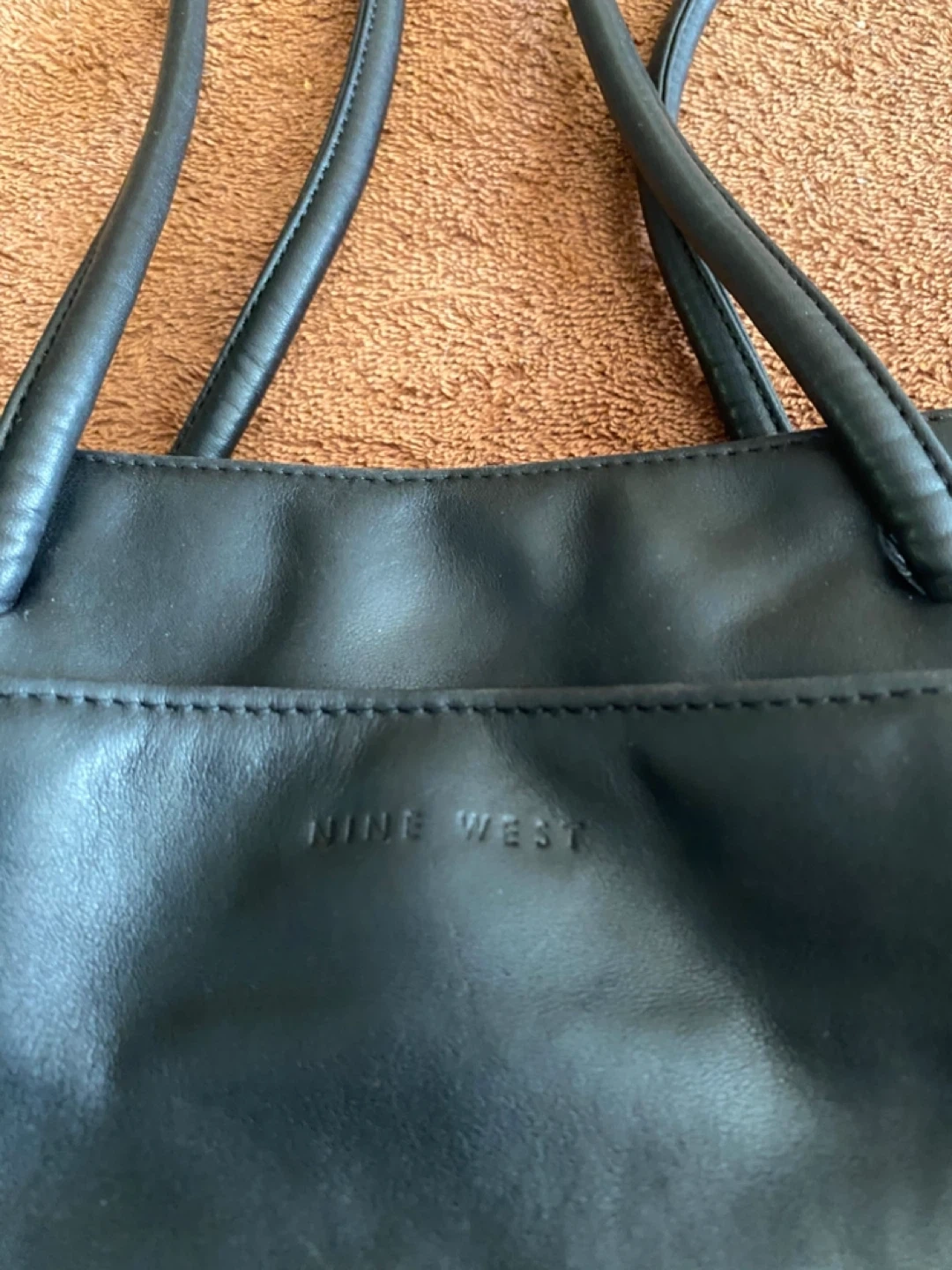 A classic black Nine West tote bag! It's in great shape and ready for a new home. Perfect for carrying your everyday essentials.