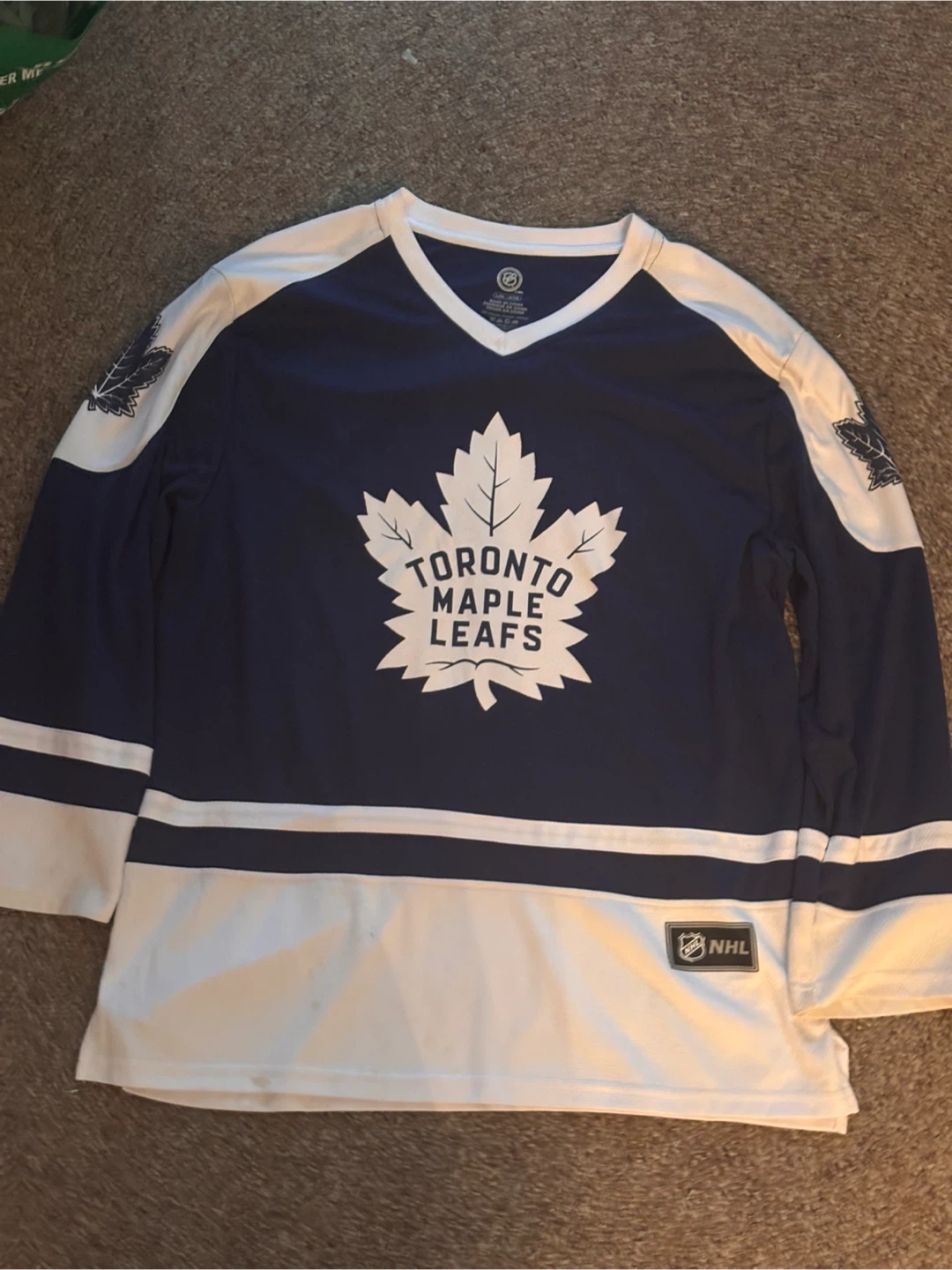 1 / 41 / 4Buy & SellToronto Maple Leafs NHL Jersey Size L/XLToronto Maple Leafs NHL Jersey Size L/XL$9Leafs Fan Jersey 0 damage Official NHL Licensed Worn 1 time All info on 3rd imageWHERE TO MEETMexitaco Parking LotView MapSELLERDavidDorset Park10411 reviews1 chats·1 favorites·30 viewsSEND CHAT TO SELLERHi David! I’m interested in your listing.Hi David! I’m interested in your listing.Get the Karrot app to chatSign In to chat