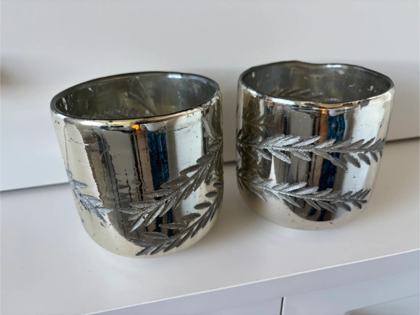 Buy & SellSilver Mercury Glass Candle Holders (Set of 2)Silver Mercury Glass Candle Holders (Set of 2)$5Selling a set of two silver mercury glass candle holders. They have a lovely leaf design etched around the outside.ConditionLike newWHERE TO MEETKanaka SpringsView MapSELLERverifiedRyanAlbion762 reviews0 chats·0 favorites·3 views