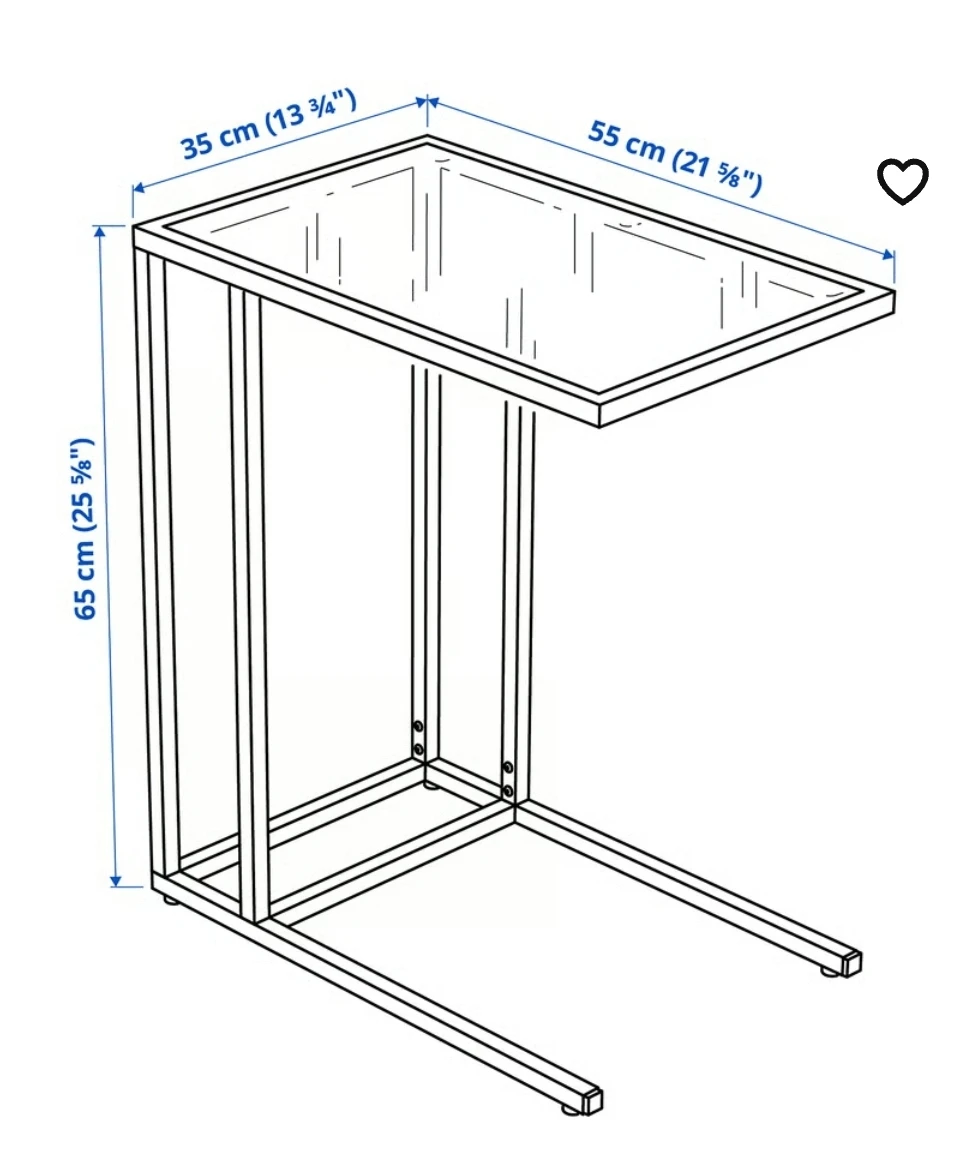 Selling an IKEA VITTSJÖ laptop stand in white and glass. It's in great condition and comes with the original box. The dimensions are 35x65 cm (13 3/4x25 5/8 "). A handy little table for your laptop or other items!