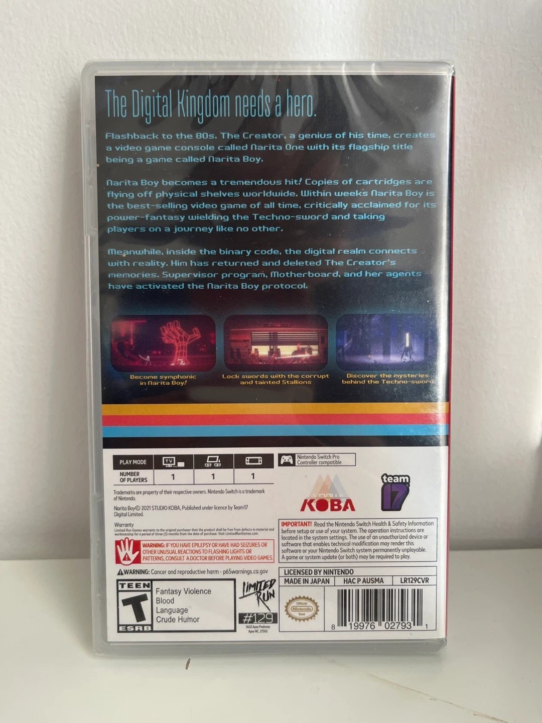 78I'm selling a brand new, sealed copy of Narita Boy for the Nintendo Switch! It's still in its original packaging and ready for a new home. A great addition to any Switch collection! Limited Run Games #129