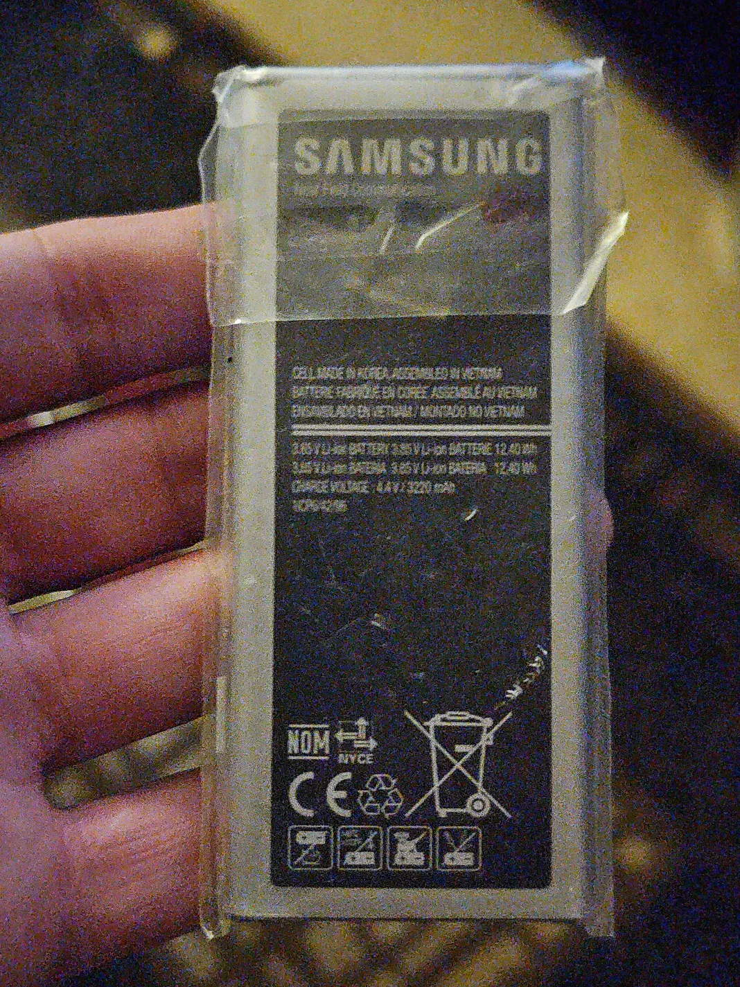 Selling a new OEM Samsung Galaxy Note 4 Battery Near-field communication NFC Model # EB-BN910BBU Capacity: 3220mAh Charge Voltage: 4.4V 3.85V Li-Ion Rechargeable Battery, 12.40 Wh Dimensions (Inches): 3.35" X 1.57" X 0.16" (85mm X 40mm X 4mm)