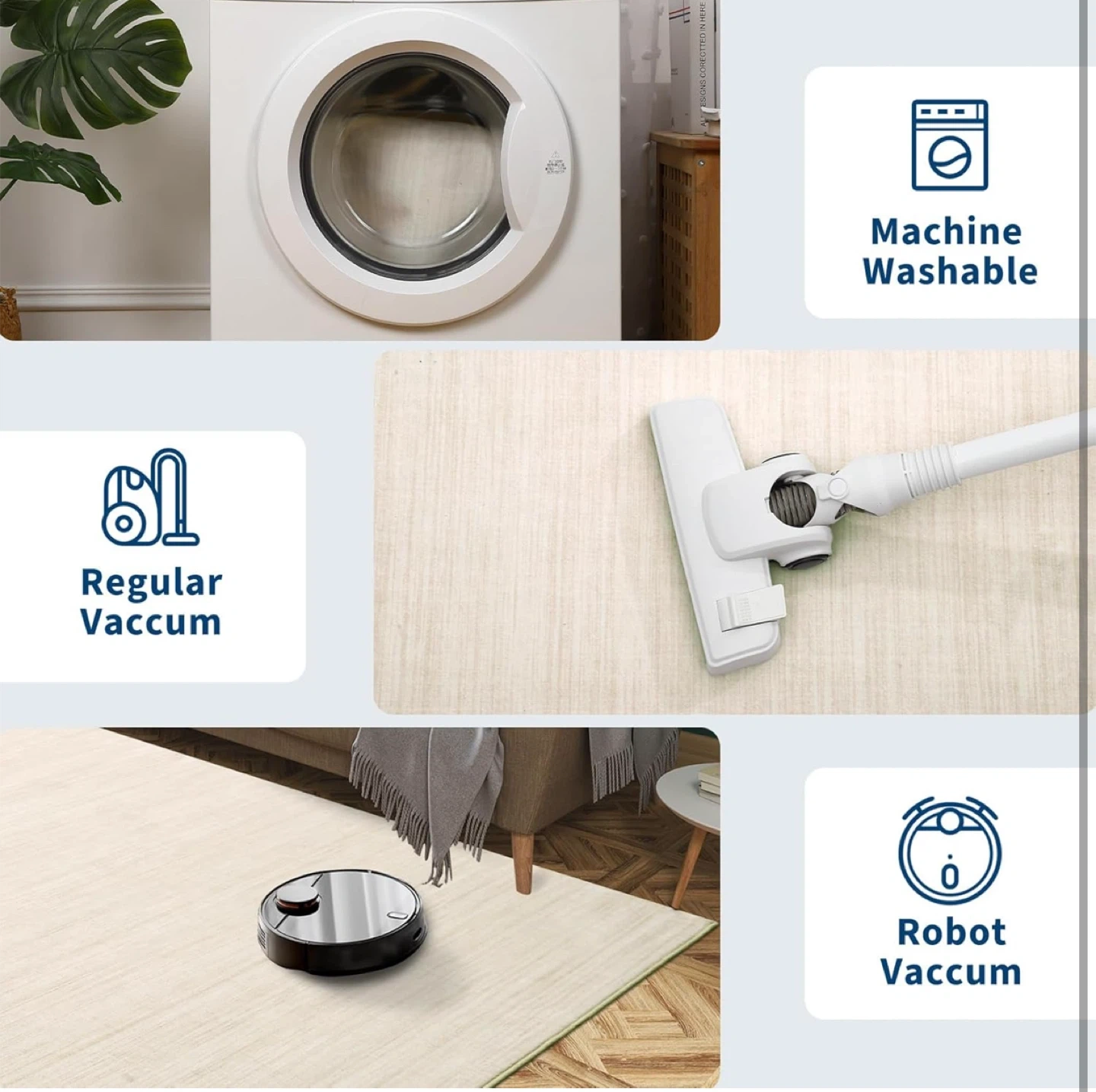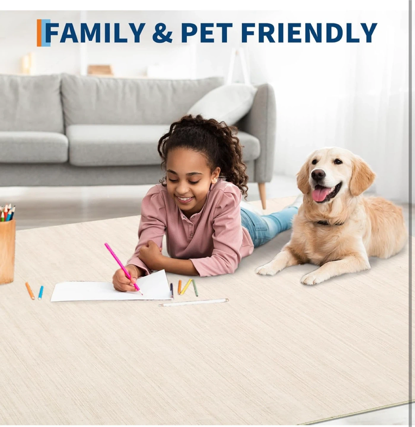 Beige Area Rug 7x5 ft- Family & Pet Friendly