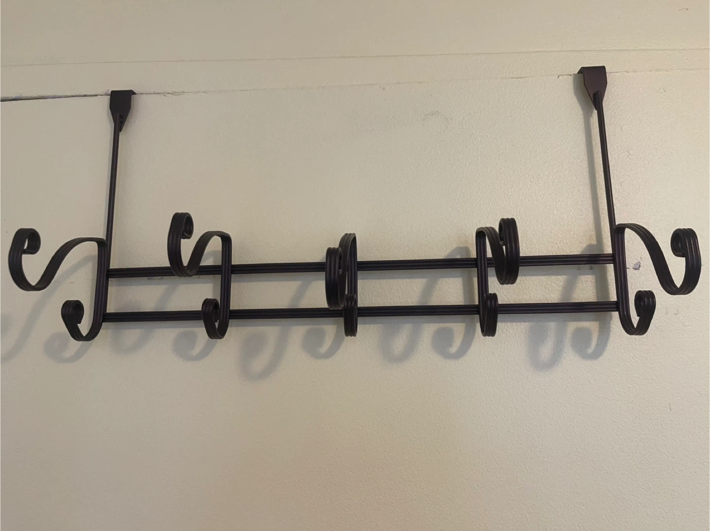 This is a metal over-the-door coat rack! It's great for adding extra hanging space without taking up floor space. Perfect for small apartments or closets