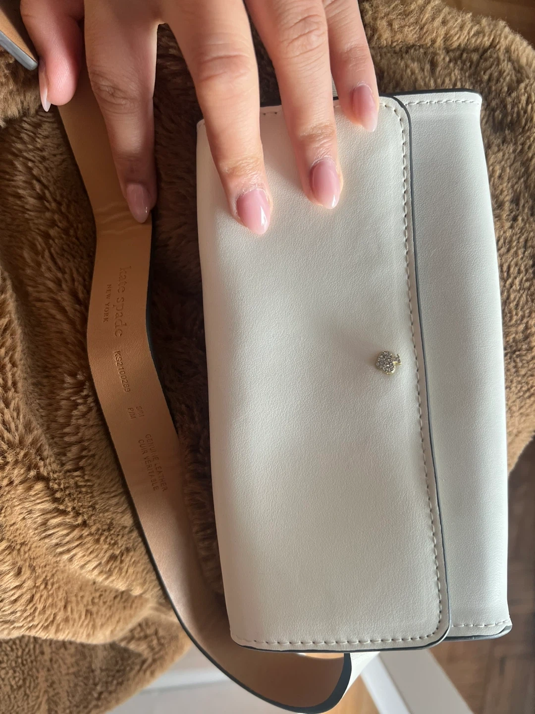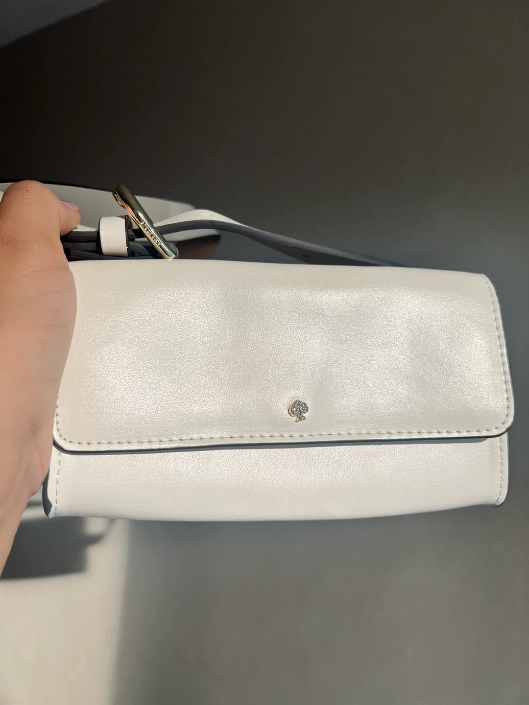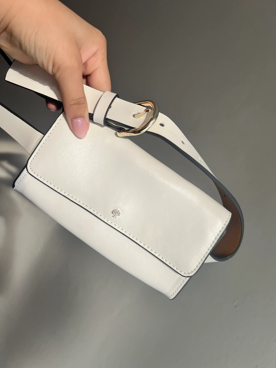 Selling a Kate Spade white leather belt bag! It's in great condition and perfect for carrying essentials while keeping your hands free. The bag is made of genuine leather and features a stylish design with a belt for easy wear