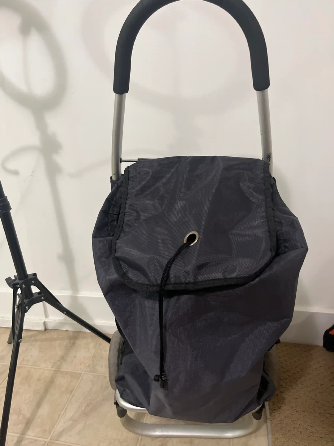 60Selling a handy black shopping trolley cart! It's in great shape and ready to help with your grocery runs or trips to the market. The material is durable and the design is practical for easy transport. Perfect for anyone looking to make shopping a bit easier!