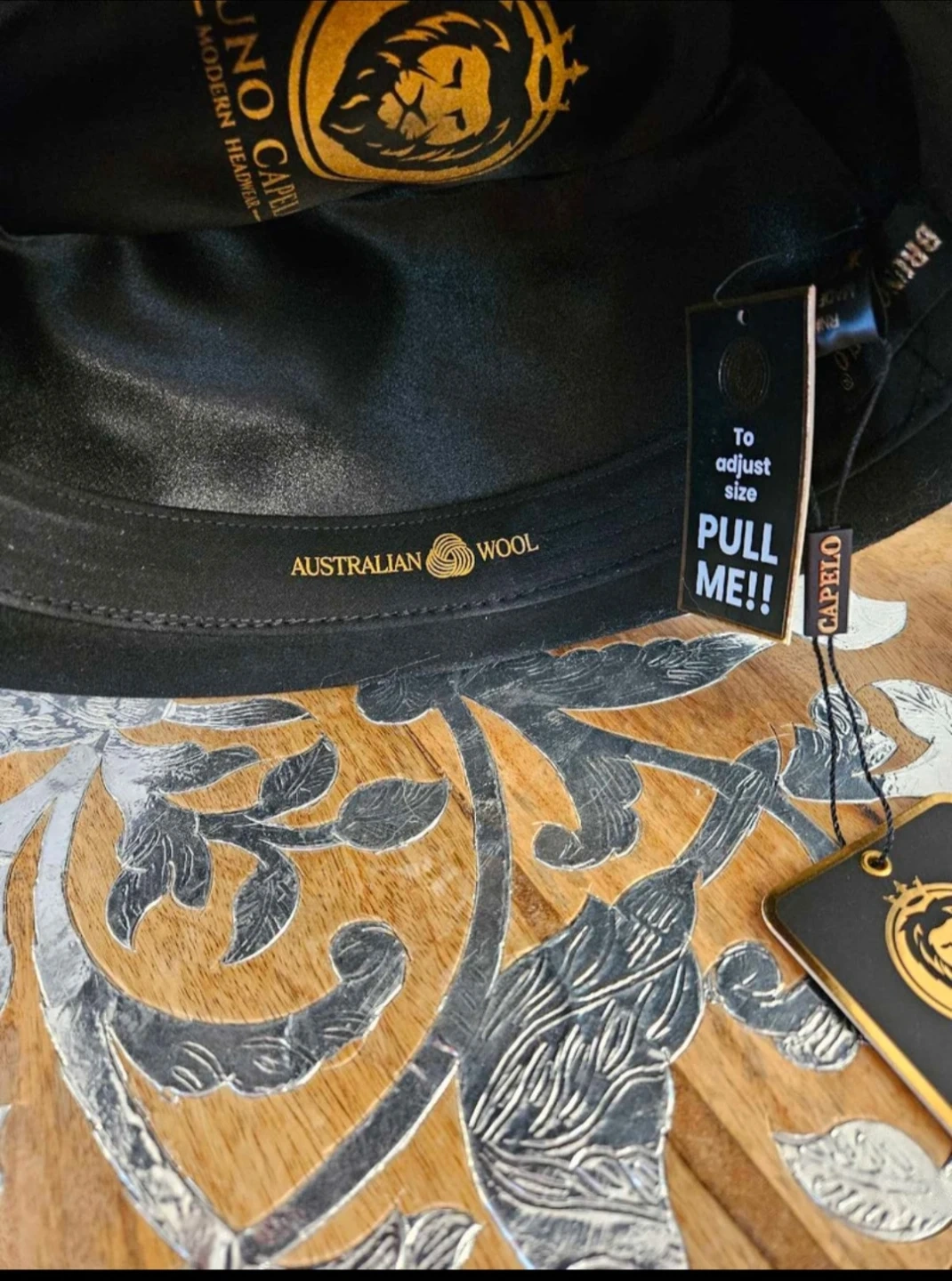Here's a stylish NWT Bruno Capelo fedora hat in classic black! It's in great condition and ready to add a touch of sophistication to your wardrobe. Perfect for any occasion!