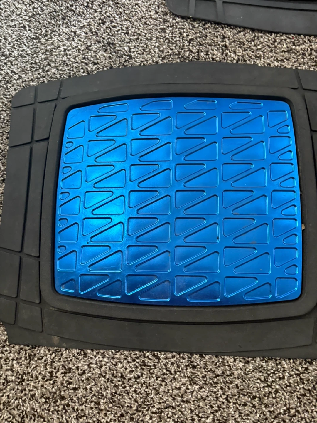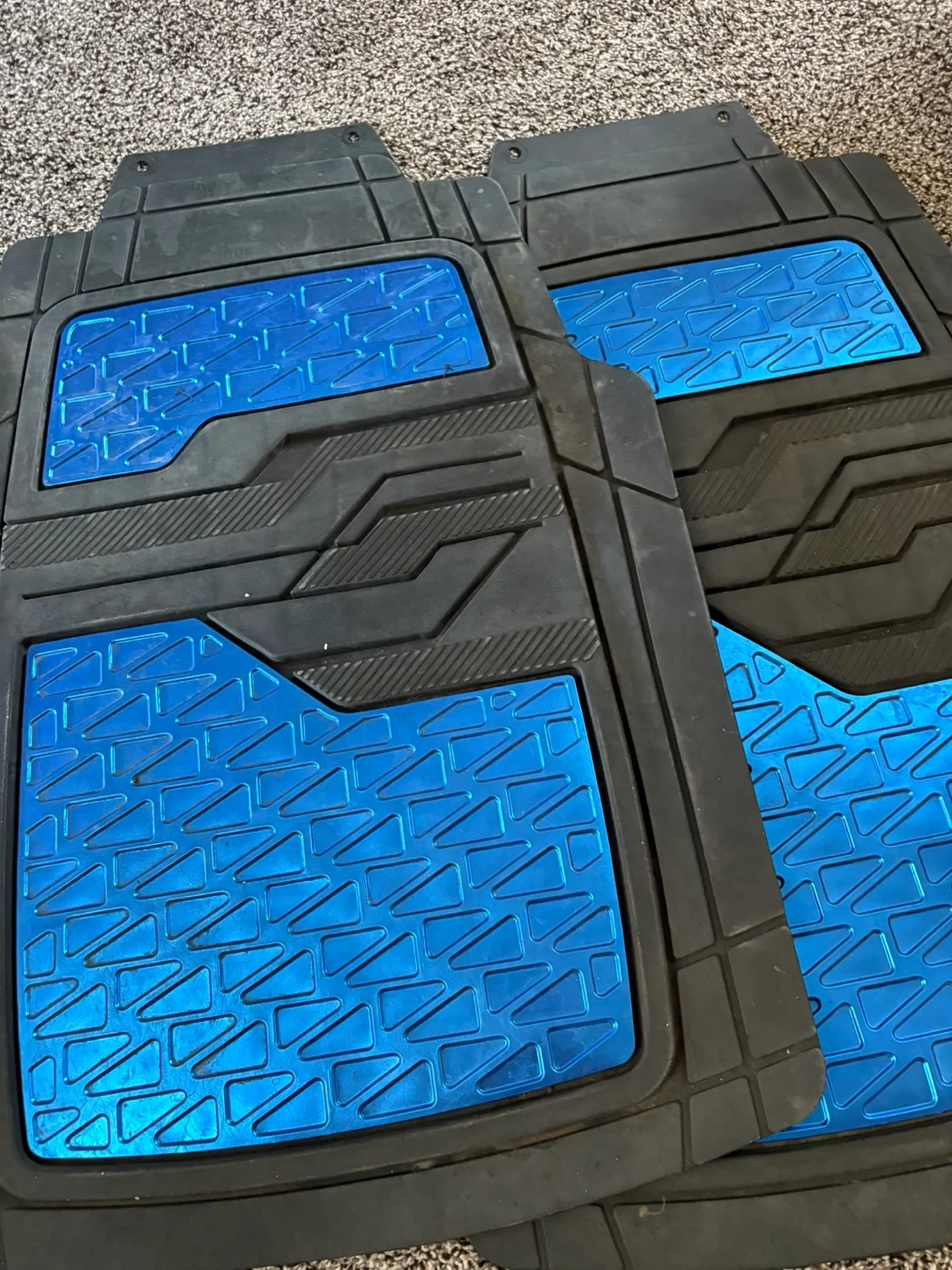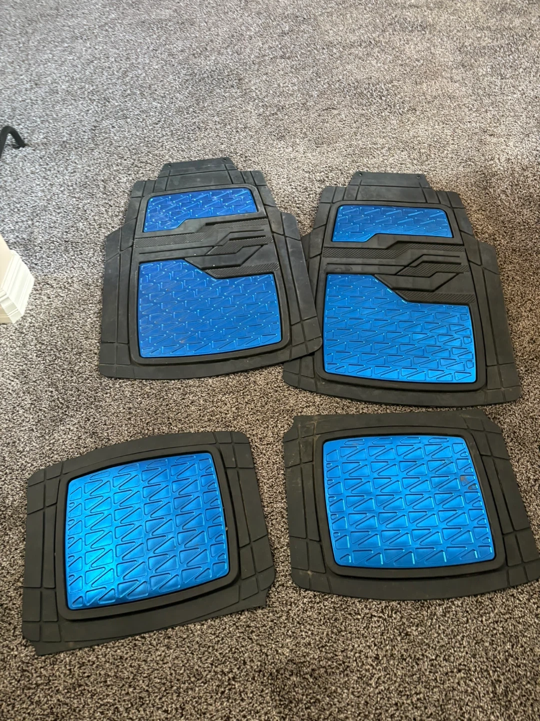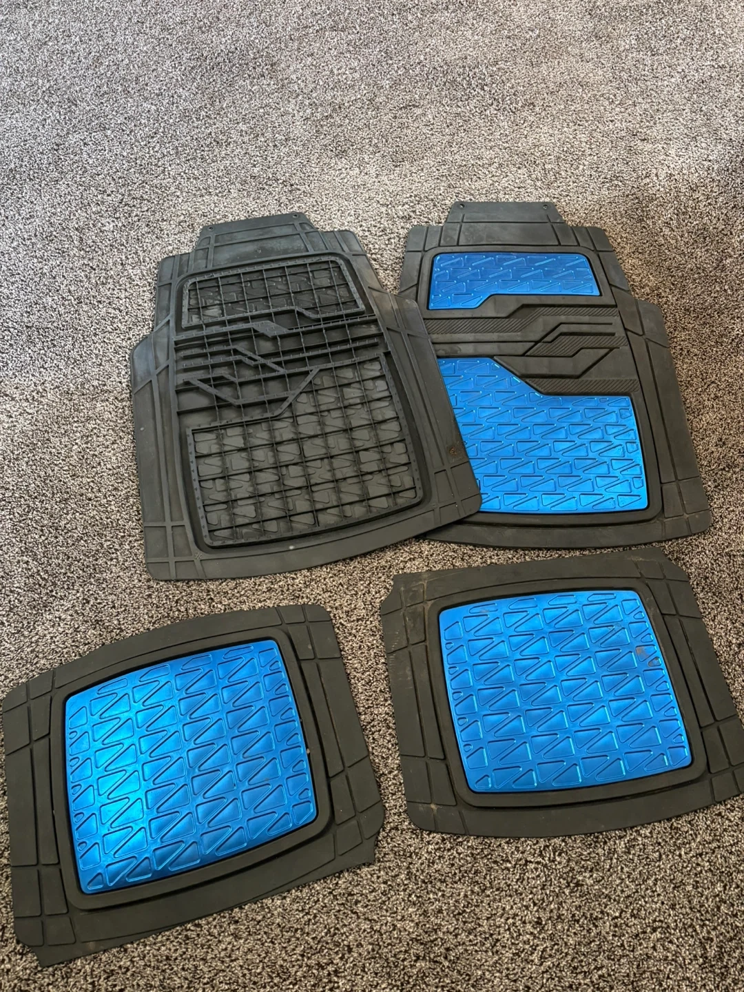 42Selling a set of 4 car floor mats in good condition. They are black with a blue patterned insert. Great for protecting your car's interior from dirt and wear! They fit most standard car sizes.