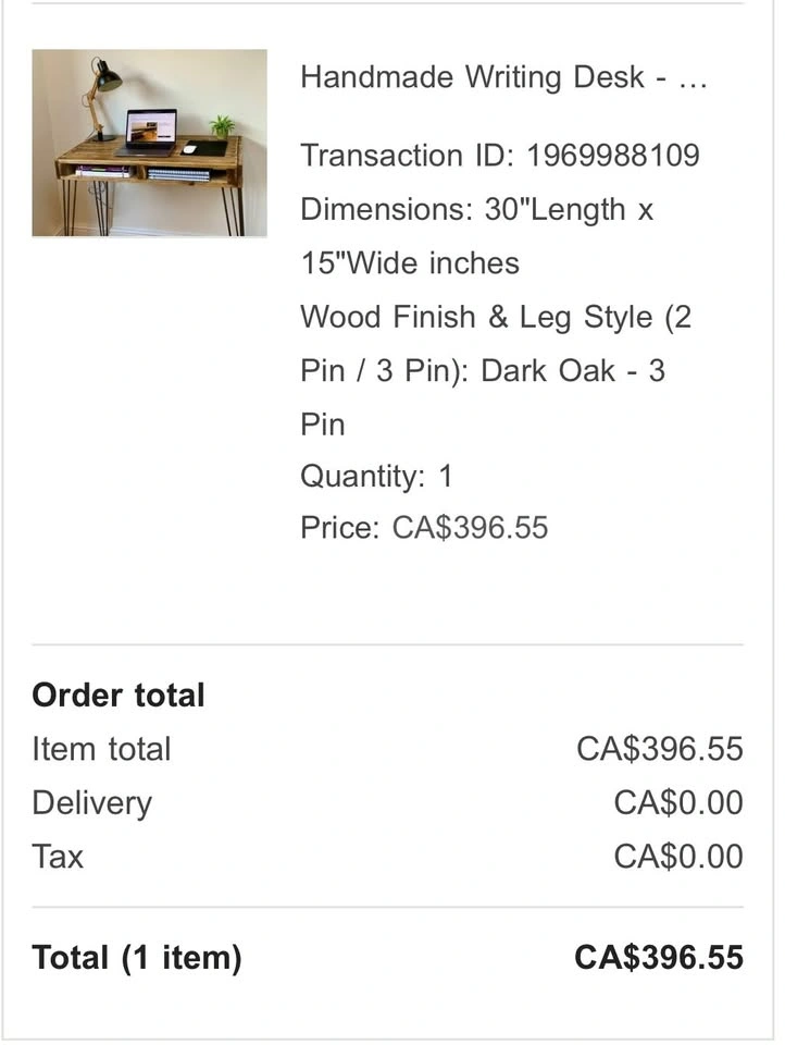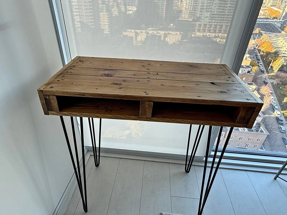 15Moving out sale Handmade wooden table that can be used as a desk or a console table. L: 30" W: 15" Bought it for $400 from Etsy (receipt attached). Used it with care. Pick Up @ Strachan Ave / East Liberty Street Cash Only.