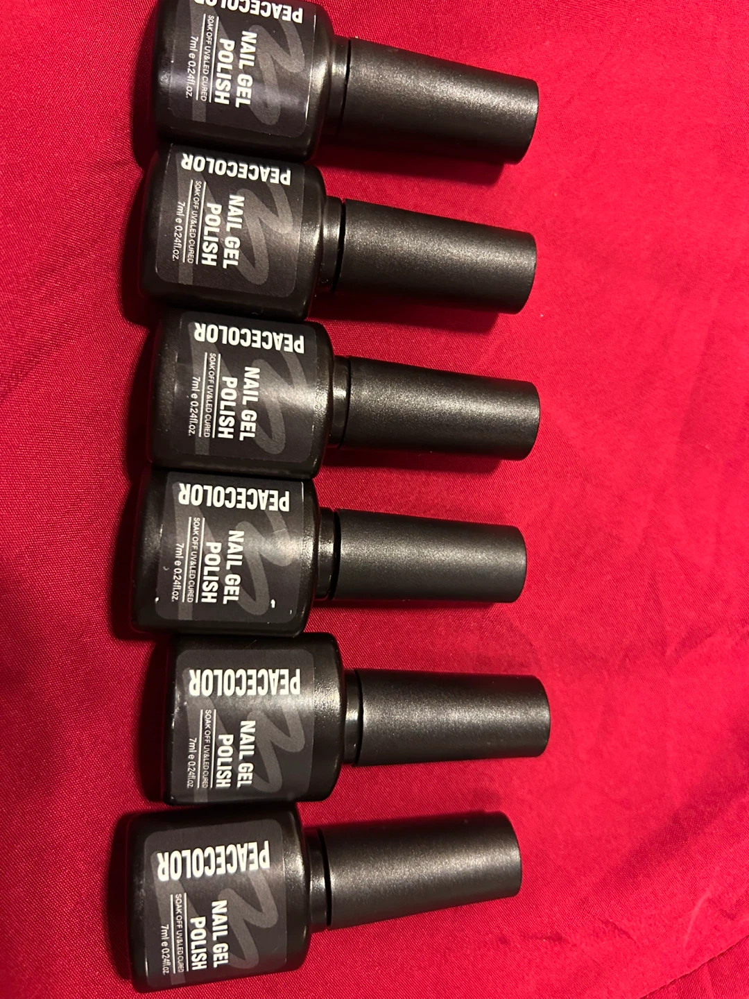 Selling a set of Peacecolor nail gel polishes. The bottles are 7ml/0.24fl oz each. Colours include 03, 108, 20, 29, 54, and SZ03