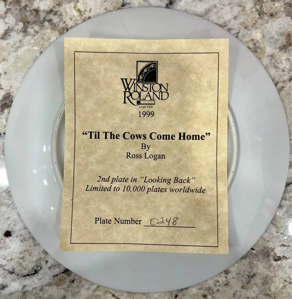 Til The Cows Come Home by Ross Logan. Winston Roland Porcelain Collector Plate limited edition, fine porcelain decorative plate.