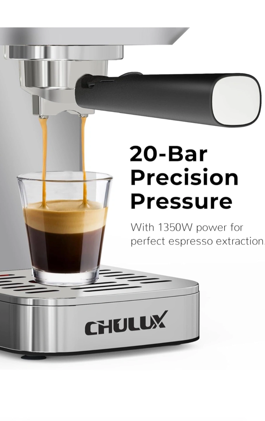 Selling a brand new CHULUX Kom-Pro Espresso Machine, perfect for making café-quality drinks right at home. With its 20-bar professional pressure system, this machine delivers rich flavor and smooth crema every time.
