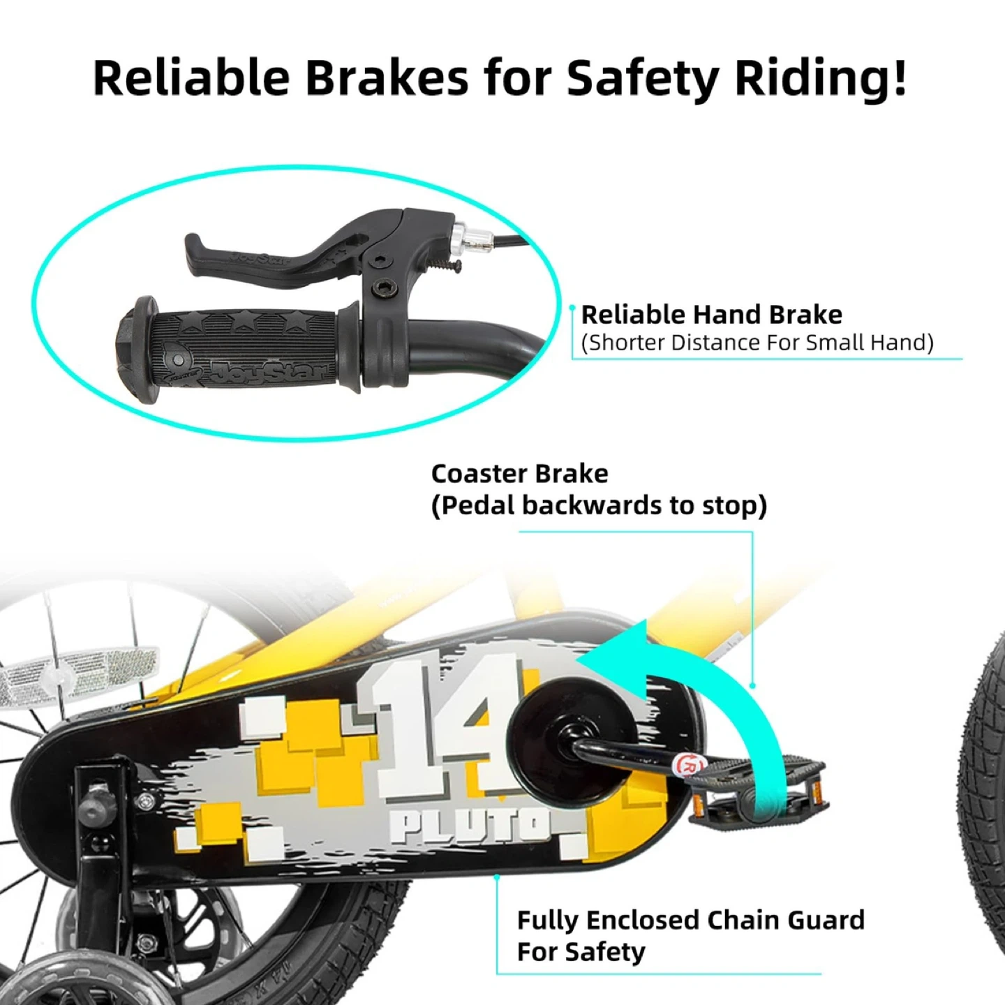 DIY DECAL & SAFE CHAIN GURAD - Your child will get a DIY decal, they could make a unique bike with the decal by sticking their name on the frame or chain guard. The chain guard well protects the chain, it will last longer than other bikes, your child will not get hurt when try to touch the chain.