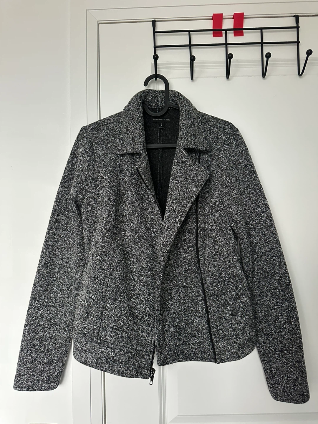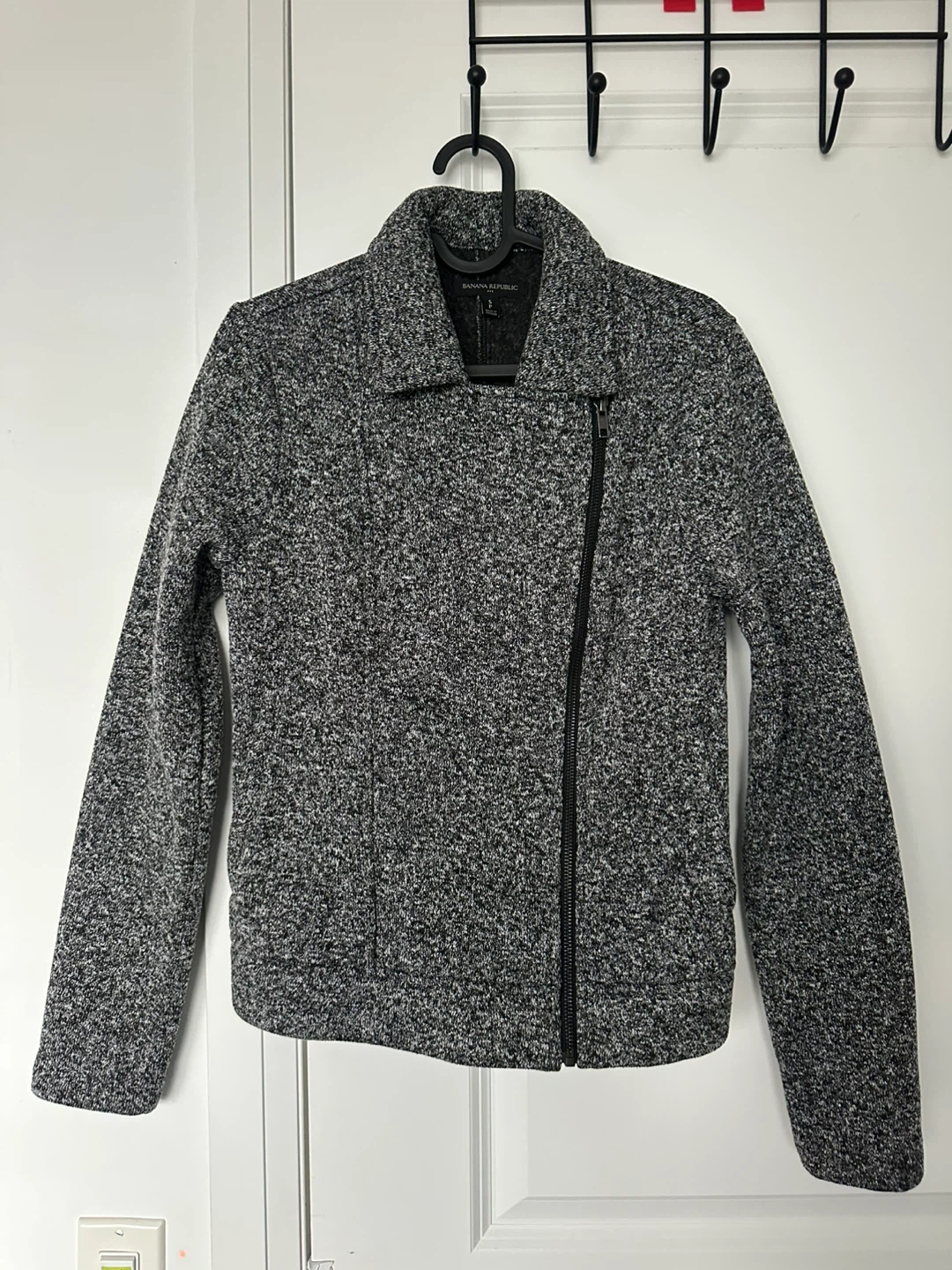 Selling a Banana Republic moto jacket in size small. It's a stylish grey colour and in great condition. Perfect for adding a bit of edge to any outfit!