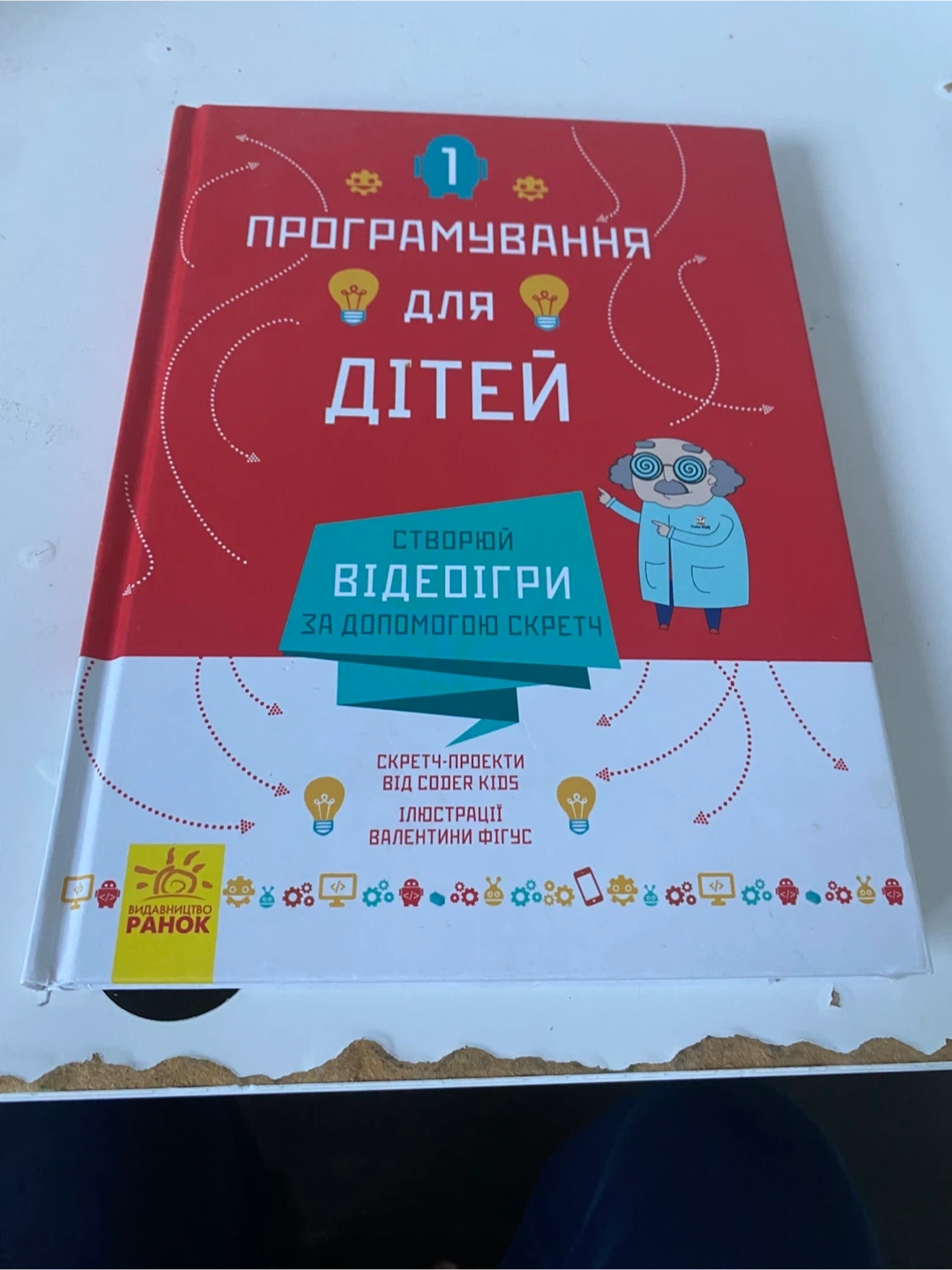 10Selling a book titled 'Programming for Kids'. It helps kids create video games with Scratch. The book includes step-by-step instructions for creating six video games and links to download all the necessary materials. (In Ukrainian)