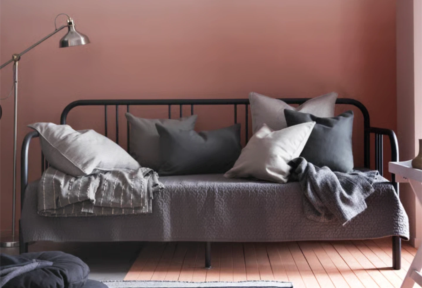 Selling black metal daybed / sofa bed — with 2 firm mattresses