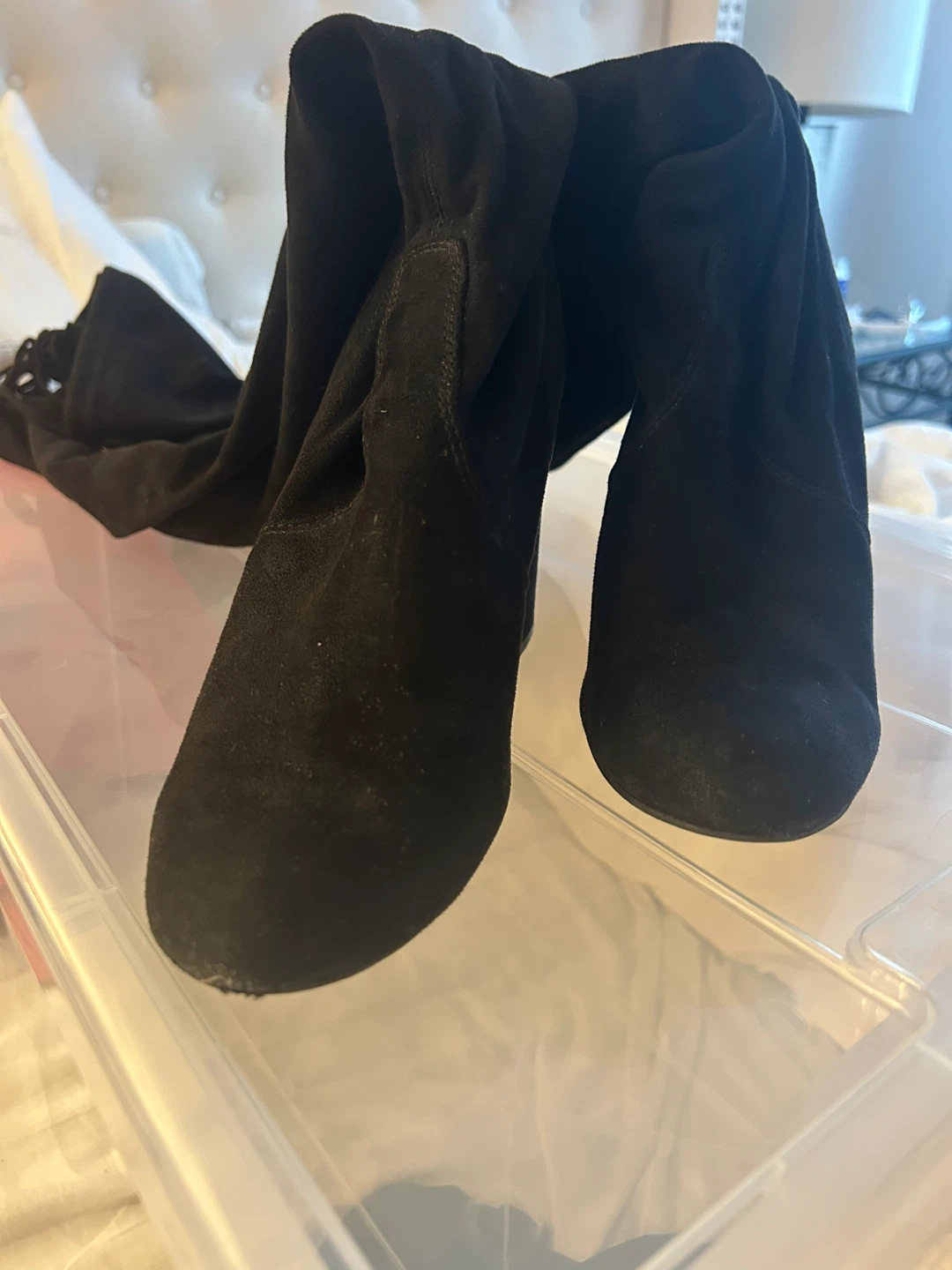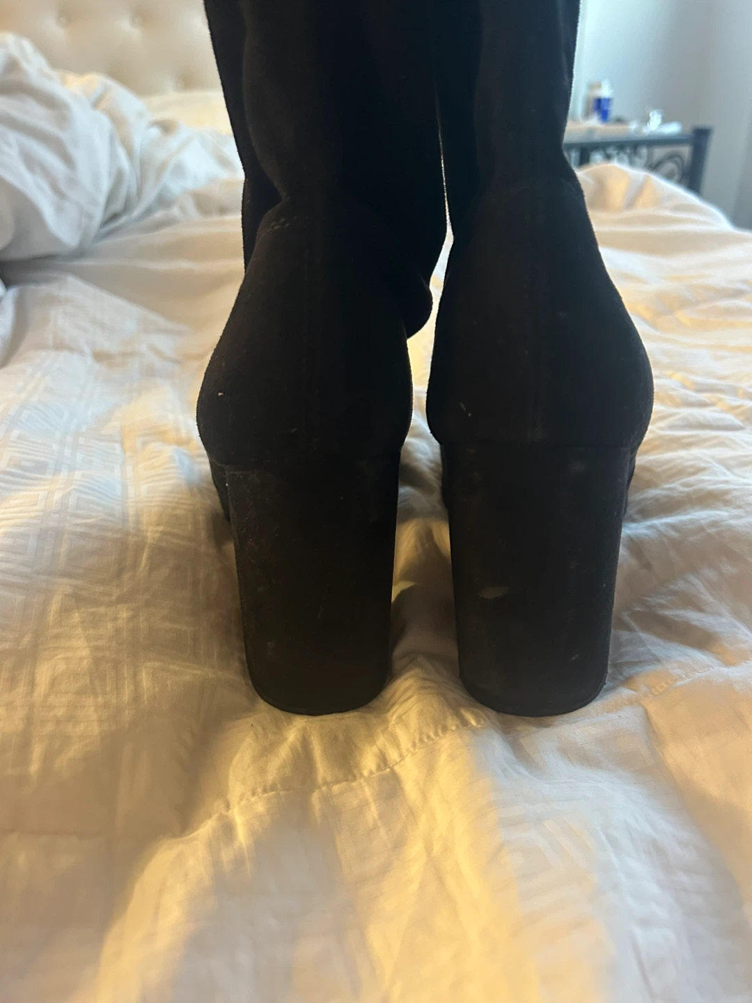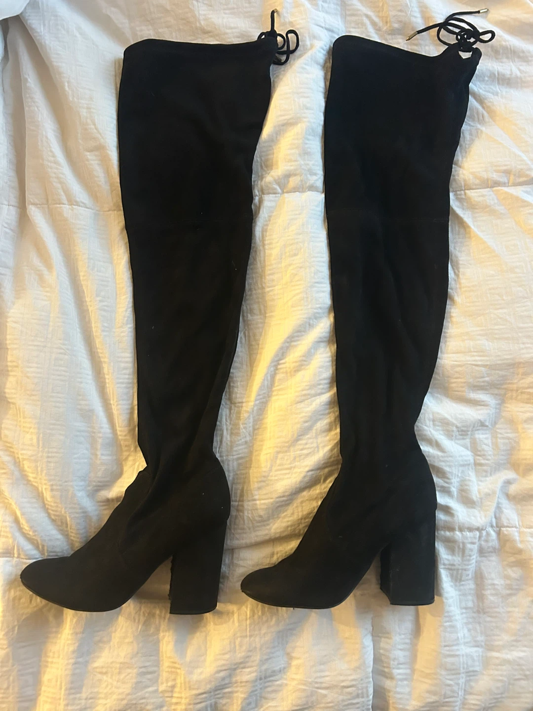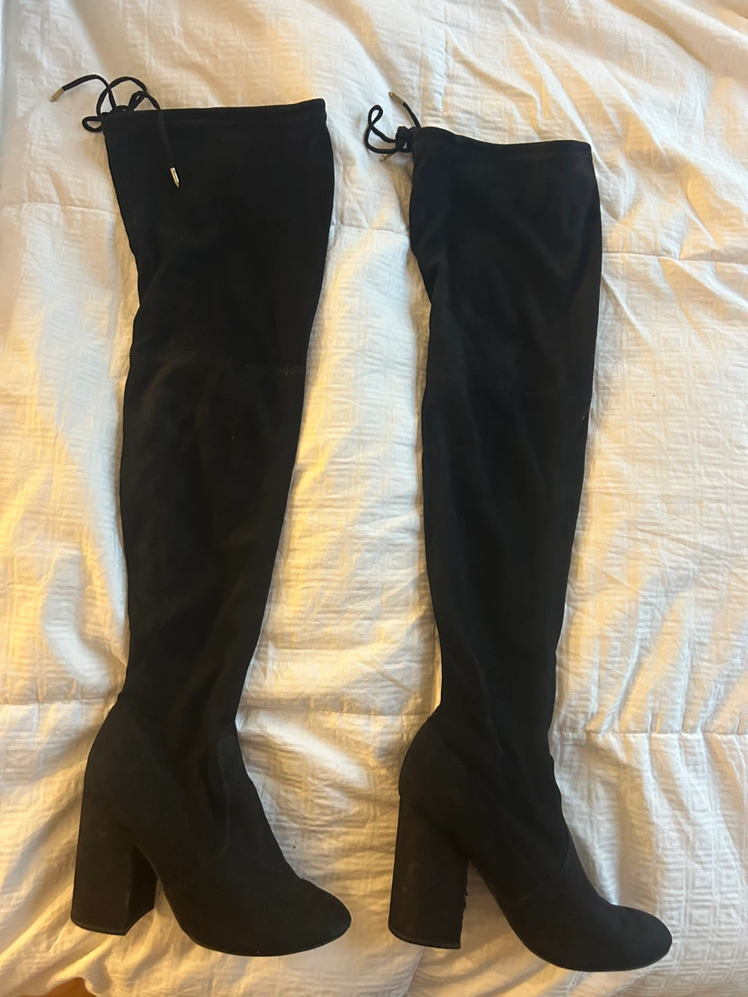 Beautiful black thigh-high suede boots! They're in great condition - like new (only worn once) and ready for a new home :) - Steve Madden - size 8.5 - 4” heel - great quality - stays up with a secure tie