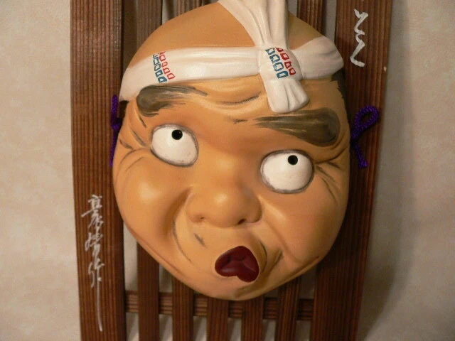 Selling a traditional Japanese Noh Mask Okame Hyottoko Home Decor Wall Mask Funny Man. It's a unique piece of cultural art, perfect for display to give some Asian essence in to your home or to add something unusual to your collections 😉