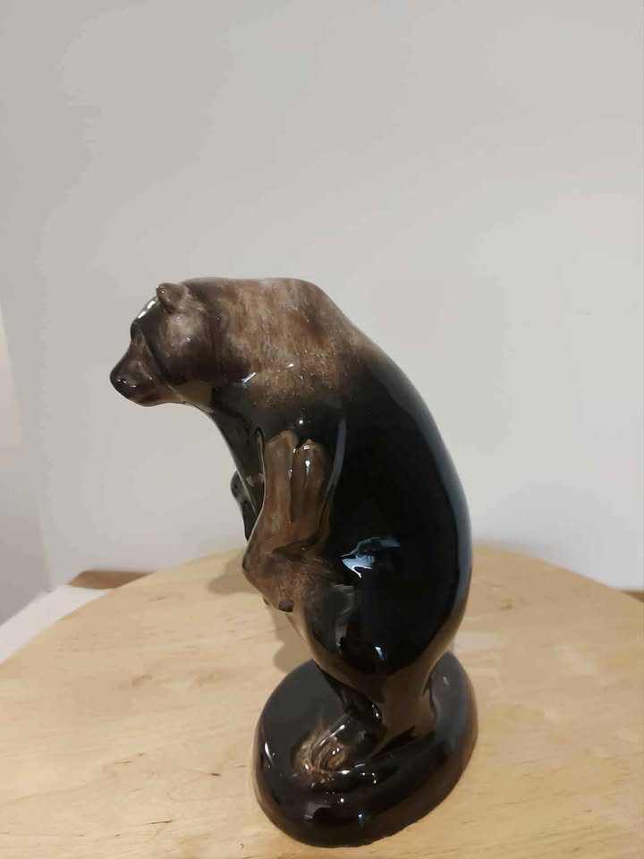 This is a vintage standing bear figurine made in Canada by Canadiana Pottery. Part of the Walt Disney Productions "True-Life Adventures" nature documentary film series based on "King of the Grizzlies" (movie by Disney 1970) It is 8” tall, 4-¾” long and 3-½” wide and in very good condition.