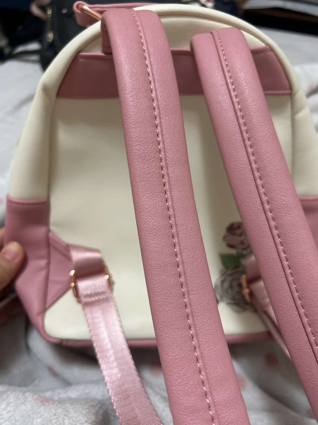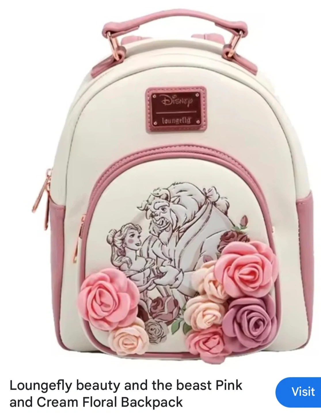 This is a New super cute Disney Loungefly backpack featuring Beauty and the Beast! It has a floral design with pink and cream colours. The inside has a rose pattern. Perfect for any Disney fan!