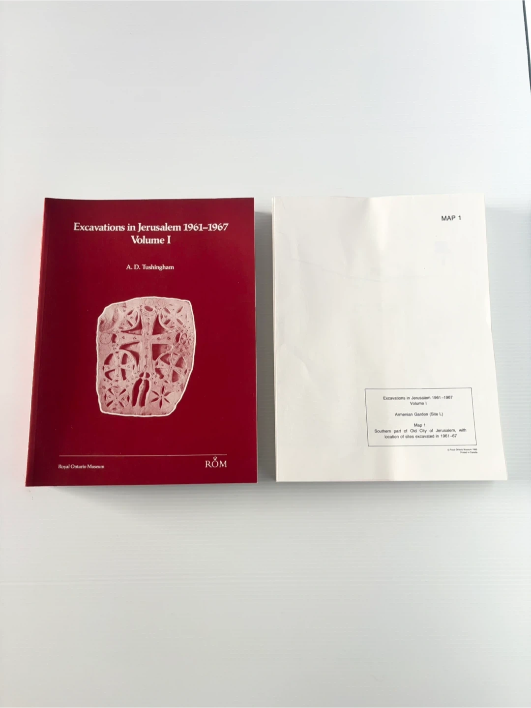 145Vintage royal Ontario Museum excavations in Jerusalem 1961-1967 volume 1 book and maps. Includes excavation documents and maps.