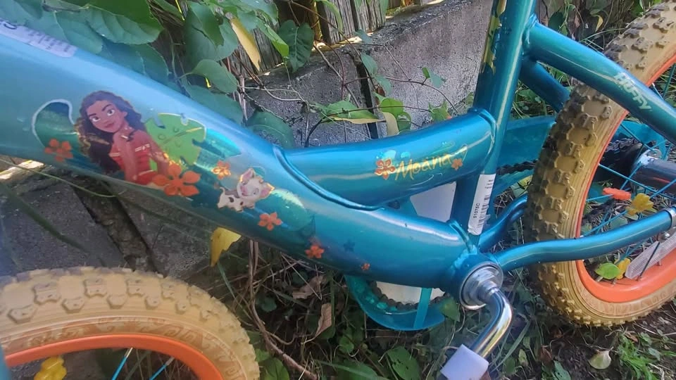 34Orange Moana Bike For Sale. I got it for $120 from Walmart but my kids want Frozen so that is why I am selling it. It comes with training wheels and it is ready to be picked up.